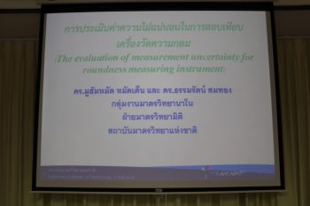 ส่วนฝึกอบรม กลุ่มงานพัฒนาธุรกิจ ฝ่ายนโยบายและยุทธศาสตร์ จัดอบรมประจำปีภายใต้หัวข้อ การประเมินค่าความไม่แน่นอนในการสอบเทียบเครื่อง Roundness measuring instrument บรรยายให้ความรู้แก่ผู้เข้าอบรมจากหน่วยทั้งจากภาครัฐ เอกชน และอุตสาหกรรม โดยดร.ธรรมรัตน์ สมทอง หัวหน้าห้องปฏิบัติการพื้นผิว และดร.มูฮัมหมัด หมัดเด็น หัวหน้าห้องปฏิบัติการรูปร่าง ฝ่ายมาตรวิทยามิติ โดยมีวัตถุประสงค์เพื่อให้ผู้เข้าอบรมได้มีความรู้ความเข้าใจหลักการและวิธีการสอบเทียบเครื่องวัดความกลมตามมาตรฐานสากล การใช้เครื่องวัดความกลมในการตรวจสอบเกี่ยวกับ Geometric Dimensioning & Tolerancing (GD&T) รวมถึงการประเมินค่าความไม่แน่นอนของการสอบเทียบเครื่องวัดความกลมอีกด้วย ณ อาคารสำนักงานกลาง มว. จ.ปทุมธานี