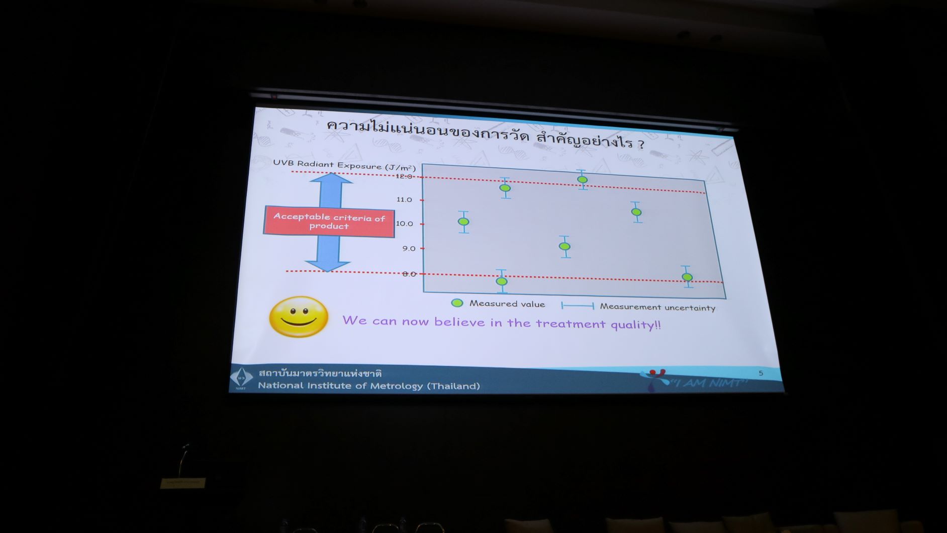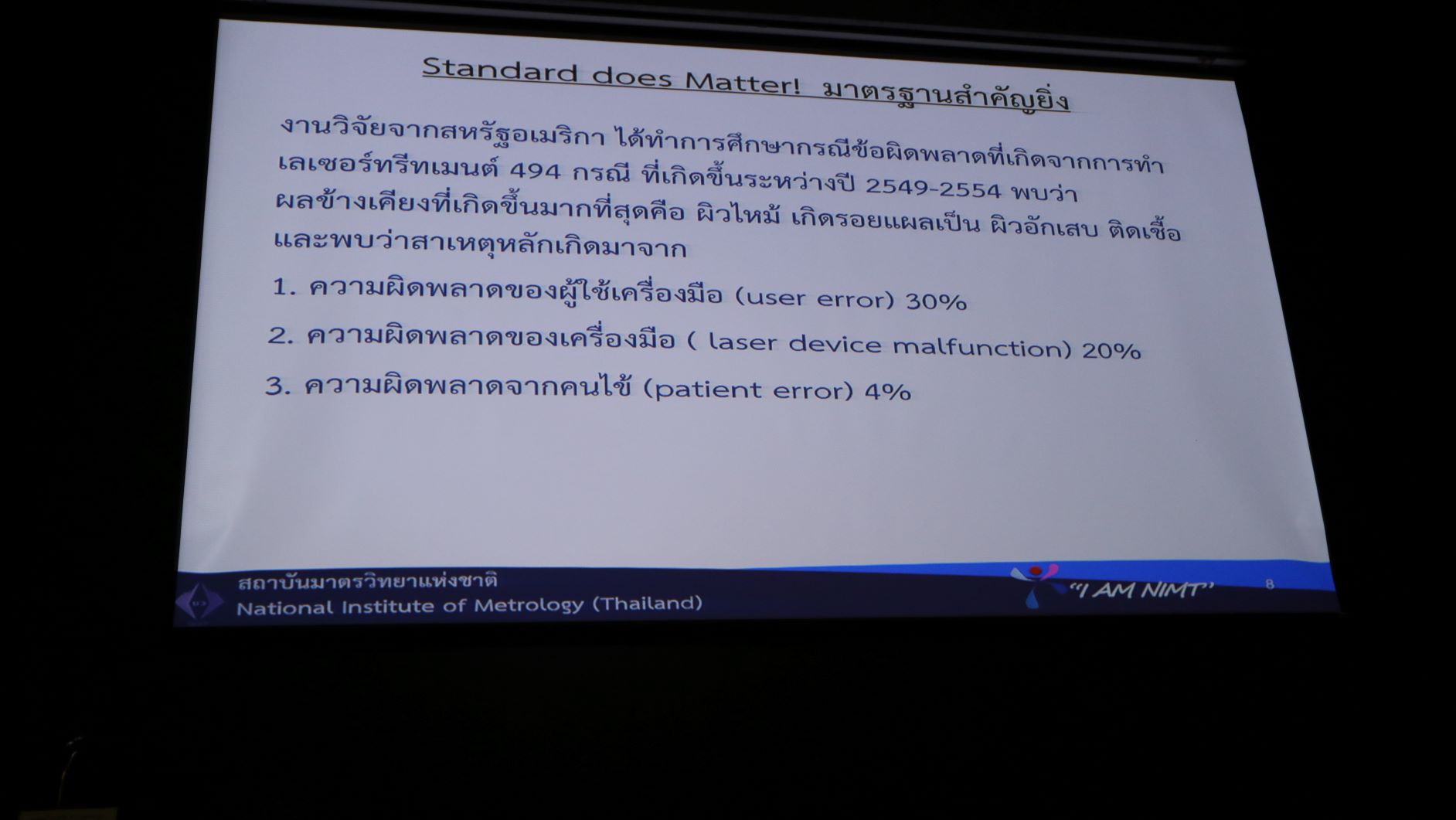 โดยการจัดงานครั้งนี้ มีวัตถุประสงค์เพื่อให้ความรู้ที่มุ่งเน้นการเรียนรู้เรื่องโรคผิวหนังที่พบบ่อยและจำเป็นที่ต้องใช้แสงในการรักษา อาทิ รังสียูวี รักษาโรคสะเก็ดเงิน โรคผิวหนังที่เกิดจากเชื้อโรค หรือ เลเซอร์ที่ใช้รักษาโรคผิวหนัง เช่น กระ และ ฝ้า เป็นต้น เพื่อให้แพทย์รู้จักและวินิจฉัย รักษาโรคผิวหนังได้อย่างถูกต้อง แม่นยำ โดยมีผู้เชี่ยวชาญจาก มว. ได้แก่ น.ส.จรวยรัตน์ เหย่ากุลบดี รักษาการหัวหน้าฝ่ายมาตรวิทยาอุณหภูมิและแสง ดร.กนกวรรณ นนทพจน์ นักมาตรวิทยาชำนาญการ ห้องปฏิบัติการเลเซอร์พาวเวอร์ ฝ่ายมาตรวิทยาไฟฟ้า และนายพลวัฒน์ จำปาเรือง นักมาตรวิทยาปฏิบัติการ ฝ่ายมาตรวิทยาอุณหภูมิและแสง เข้าร่วมงานและบรรยาย ทั้งนี้เพื่อเป็นการสื่อสารถึงพันธกิจและวิสัยทัศน์ของ มว. ตลอดจนถ่ายทอดองค์ความรู้และสร้างความตระหนักถึงความสำคัญของมาตรวิทยาหรือการวัดที่ถูกต้อง แม่นยำและสามารถสอบย้อนกลับได้ อันเป็นปัจจัยสำคัญที่ช่วยเพิ่มผลิตภาพให้แก่บุคลากรในวงการแพทย์ผิวหนัง เสริมศักยภาพให้แก่เครื่องมือที่ใช้ในการรักษาอันนำไปสู่การวินิจฉัยและรักษาโรคได้อย่างถูกต้องและแม่นยำ ตลอดจนสร้างเครือข่ายบูรณาการเพื่อนำไปสู่การพัฒนาด้านงานวิจัยร่วมระหว่างองค์กรเพื่อผลิตองค์ความรู้ใหม่ๆและนวัตกรรมด้าน Photo Therapy for Dermatology หรือเครื่องมือที่ต้องการใช้แสงในการรักษา ต่อไปในอนาคต