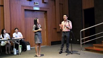 - (ซ้าย) ศ.ดร.นพ.ประวิตร อัศวานันท์ หัวหน้าหน่วยผิวหนัง ฝ่ายอายุรศาสตร์ รพ.จุฬาลงกรณ์ สภากาชาดไทย ผู้จัดงาน