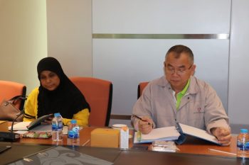 - นายสำเนาว์ ทองมั่น และนางพจมาน ท่าจีน ผู้แทนคณะอนุกรรมการพิจารณารับรองความสามารถห้องปฏิบัติการทางกลและเคมี