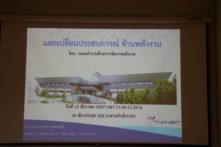 นายอนุสรณ์ ทนหมื่นไวย รองผู้อำนวยการ มว. เป็นประธานเปิดการจัดอบรมเรื่อง “ปลุกจิตสำนึกการอนุรักษ์พลังงานและใช้พลังงานอย่างมีประสิทธิภาพ” จัดโดยคณะทำงานจัดการพลังงาน สถาบันมาตรวิทยาแห่งชาติ มว. บรรยายให้ความรู้แก่พนักงาน มว. โดยนายพิชชา สุทธิกุล วิศวกรชำนาญการ กรมพัฒนาพลังงานทดแทนและอนุรักษ์พลังงาน กระทรวงพลังงาน โดยมีวัตถุประสงค์เพื่อให้พนักงาน มว. ผู้เข้าอบรมมีความรู้ความเข้าใจในเรื่องการอนุรักษ์พลังงาน เกิดความตระหนักและปรับเปลี่ยนพฤติกรรมการใช้พลังงานให้มีประสิทธิภาพมากขึ้น และการดำเนินงานอนุรักษ์พลังงานเป็นไปอย่างต่อเนื่อง ณ อาคารสำนักงานกลาง มว. จ.ปทุมธานี