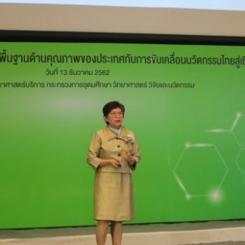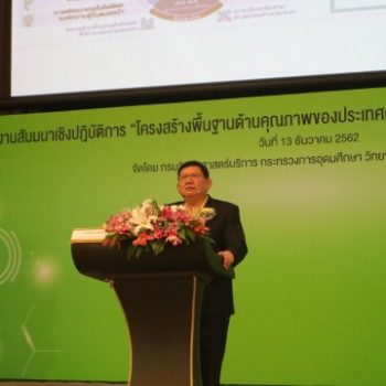เมื่อวันที่ 13 ธันวาคม 2562 ดร.สุวิทย์ เมษินทรีย์ รัฐมนตรีว่าการกระทรวงการอุดมศึกษา วิทยาศาสตร์ วิจัยและนวัตกรรม เป็นสักขีพยานการลงนามบันทึกความเข้าใจ“การพัฒนาความสามารถของหน่วยตรวจสอบและรับรอง”ระหว่างภาคการศึกษากับกรมวิทยาศาสตร์บริการ พร้อมปาฐกถาพิเศษ เรื่อง ขับเคลื่อนเศรษฐกิจ BCG และนวัตกรรมด้วย NQI” (Driving BCG Economy and Innovation with NQI) ในงานสัมมนาเชิงปฏิบัติการ เรื่อง“โครงสร้างพื้นฐานด้านคุณภาพของประเทศกับการขับเคลื่อนนวัตกรรมไทยสู่เชิงพาณิชย์” จัดโดยกรมวิทยาศาสตร์บริการ ชึ่งมีผู้เข้าร่วมสัมมนาประกอบด้วย หน่วยงานภาคการศึกษา นักวิชาการ นักวิจัย นักวิทยาศาสตร์ห้องปฏิบัติการ ผู้ประกอบการภาคอุตสาหกรรม จำนวนกว่า 250 คน ณ โรงแรมโกลเด้น ทิวลิป ซอฟเฟอริน กรุงเทพฯ