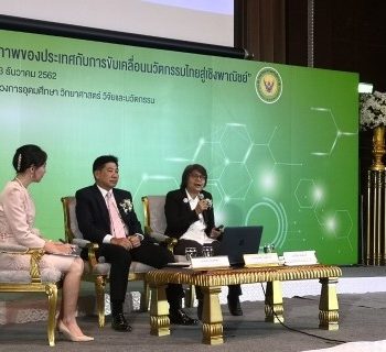 ดร.สุวิทย์ฯ ปาฐกถาพิเศษ เน้นย้ำว่าปัจจุบันรัฐบาลกำลังผลักดันการพัฒนาประเทศด้วยเศรษฐกิจ BCG หรือ Bio – Circular- Green Economy โดยเตรียมจะประกาศให้ปี 2020 เป็นปี BCG Economy ปีแห่งเศรษฐกิจยั่งยืน ขับเคลื่อนความมั่งคั่งทั่วไทย เศรษฐกิจ BCG นั้นมีความพิเศษต่อประเทศไทยซึ่งมีความหลากหลายทั้งทางธรรมชาติและวัฒนธรรม ตอบโจทย์ใน 6 มิติ คือ ต่อยอด เชื่อมโยง ตอบโจทย์ ครอบคลุม กระจาย และสานพลัง โดยเศรษฐกิจ BCG ประกอบด้วย 4 ตัวขับเคลื่อน ได้แก่ ด้านการพัฒนา 4 สาขายุทธศาสตร์ ด้านการเตรียมกำลังคน ด้านผู้เชี่ยวชาญและผู้ประกอบการการพัฒนาเชิงพื้นที่ และด้านการพัฒนาเทคโนโลยีและองค์ความรู้ขั้นแนวหน้า 4 ตัวสนับสนุน ได้แก่ ด้านปลดล็อคข้อกำจัดทางกฎหมายและกฎระเบียบต่างๆ ด้านโครงสร้างพื้นฐานสำคัญและสิ่งอำนวยความสะดวก ด้านการสร้างความสามารถของกำลังคน และด้านยกระดับเครือข่ายพันธมิตรต่างประเทศ ซึ่งการทำงานของกระทรวงจะเป็นการทำงานในรูปแบบจตุภาค (quadruple helix) ที่มีมหาวิทยาลัยและสถาบันวิจัยเป็นแกนหลักของกระทรวง อว.ดำเนินงานร่วมมือกับภาคเอกชน ภาคชุมชน รวมทั้งพันธมิตรจากต่างประเทศ การที่ไทยจะพัฒนาได้ทันโลกในศตวรรษที่ 21 นื้จะต้องทำการพลิกโฉมเศรษฐกิจของประเทศจากทำมากได้น้อยไปสู่ทำน้อยได้มาก เป็นเศรษฐกิจที่ขับเคลื่อนด้วยนวัตกรรม ซึ่งจะเร่งให้ไทยสามารถก้าวข้ามกับดักรายได้ปานกลางไปสู่ประเทศพัฒนา