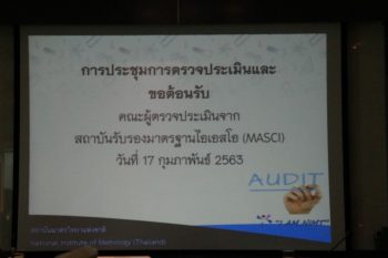 ร.ท.อุทัย นรนิ่ม ผู้ช่วยผู้อำนวยการ มว. พร้อมด้วยผู้บริหารและเจ้าหน้าที่ ให้การต้อนรับคุณทัศนัย องค์กบิลย์ หัวห้ากลุ่มผู้ตรวจประเมิน และคุณสดุดี นฤภัย ผู้ตรวจประเมิน จากสถาบันรับรองมาตรฐานไอเอสโอ (Management System Certification Institute (Thailand), MASCI) วัตถุประสงค์ของการตรวจประเมินในครั้งนี้เพื่อตรวจสอบว่าองค์กรได้มีการจัดทำระบบสอดคล้องตามมาตรฐานการรับรอง องค์กรได้มีการปฏิบัติตามระเบียบหลักเกณฑ์และเงื่อนไขที่กำหนดตาม R-001 และ R-002 และเพื่อตรวจสอบว่าองค์กรได้มีการนำระบบไปใช้อย่างมีประสิทธิผล มีการนำไปปฏิบัติอย่างสม่ำเสมอ มีการปรับปรุงอย่างต่อเนื่อง รวมทั้งเพื่อตรวจติดตามผลการแก้ไขข้อบกพร่องที่พบจากการตรวจประเมินครั้งที่ผ่านมา ณ อาคารผดุงมาตร มว. จ.ปทุมธานี