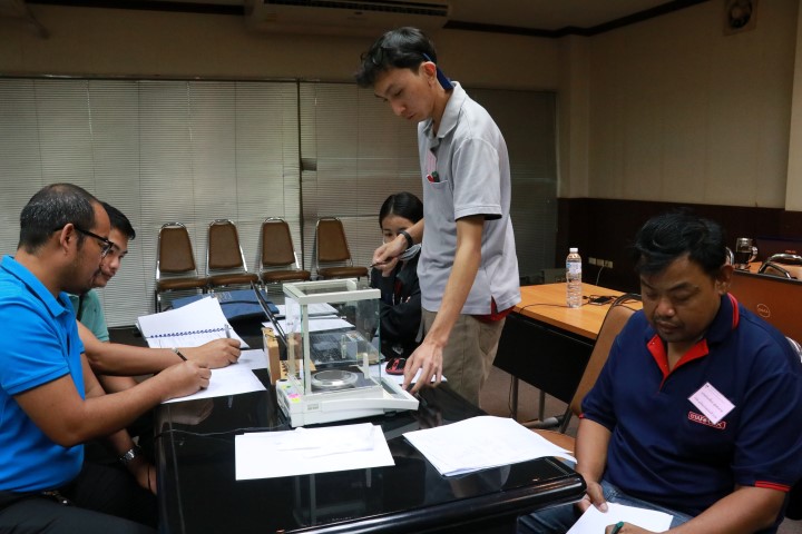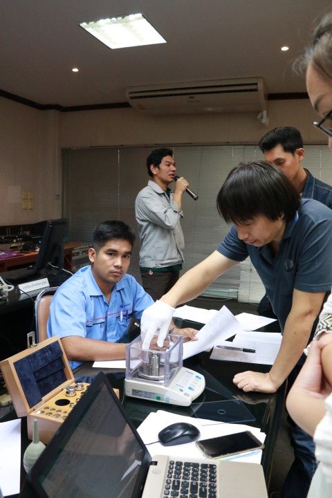 ส่วนฝึกอบรม กลุ่มงานพัฒนาธุรกิจ ฝ่ายนโยบายและยุทธศาสตร์ จัดอบรมประจำปีภายใต้หัวข้อ “การสอบเทียบ เครื่องชั่งอิเล็กทรอนิกส์ตามมาตรฐาน UKAS LAB 14” บรรยายให้ความรู้แก่ผู้เข้าอบรมจากหน่วยงานทั้งจากภาครัฐ เอกชน และอุตสาหกรรม โดยนายมนต์ชัย มิตรอารีย์ นักมาตรวิทยาชำนาญการ ห้องปฏิบัติการมวล กลุ่มงานมาตรฐานปฐมภูมิและปริมาณที่เกี่ยวข้อง และนายวิรุณ เล้าพรพิชยานุวัฒน์ กำกับดูแลกลุ่มงานมาตรฐานปฐมภูมิมวลและปริมาณที่เกี่ยวข้อง ฝ่ายมาตรวิทยาเชิงกล โดยมีวัตถุประสงค์เพื่อให้ผู้เข้าอบรมสามารถเข้าใจมาตรวิทยาด้านมวลเบื้องต้น หลักการพื้นฐานของเครื่องชั่ง และจำแนกชนิดของเครื่องชั่งได้ บอกขั้นตอนการสอบเทียบ และสามารถสอบเทียบเครื่องชั่งด้วยวิธี UKAS LAB 14 คำนวณและประเมินค่าความไม่แน่นอนผลการสอบเทียบเครื่องชั่ง สามารถออกและอ่านผลจากใบรับรองผลการสอบเทียบได้ ณ อาคารสำนักงานกลาง มว. จ.ปทุมธานี