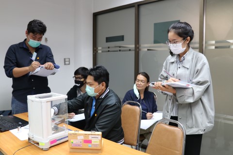 งานฝึกอบรม กลุ่มงานพัฒนาธุรกิจ ฝ่ายนโยบายและยุทธศาสตร์ จัดอบรมประจำปีในหัวข้อ “การสอบเทียบตุ้มน้ำหนักมาตรฐาน OIML R 111-1 และตุ้มน้ำหนักขนาดใหญ่” บรรยายให้ความรู้แก่ผู้เข้าอบรมที่สนใจทั้งจากภาครัฐ เอกชน และอุตสาหกรรม โดย นายวิรุณ เล้าพรพิชยานุวัฒน์ รักษาการหัวหน้าฝ่ายมาตรวิทยาเชิงกล และนายมนต์ชัย มิตรอารีย์ นักมาตรวิทยาชำนาญการ กลุ่มงานมาตรฐานปฐมภูมิและปริมาณที่เกี่ยวข้อง ฝ่ายมาตรวิทยาเชิงกล โดยมีวัตถุประสงค์เพื่อให้ผู้เข้าอบรมสามารถจำแนกความหมายของ mass, weight, apparent mass และ conventional mass ได้อย่างถูกต้อง เข้าใจข้อกำหนดทางด้านมาตรวิทยาและด้านเทคนิคของตุ้มน้ำหนักมาตรฐานตาม OIML R 111-1 บอกวิธีการเลือกใช้ การใช้งาน และการบำรุงรักษาตุ้มน้ำหนักมาตรฐานและเครื่องชั่งอิเล็กทรอนิกส์ อีกทั้งบอกขั้นตอนการสอบเทียบและสอบเทียบตุ้มน้ำหนักมาตรฐาน (Class E2 and lower) พร้อมทั้งสามารถคำนวณค่า Conventional Mass และประเมินค่าความไม่แน่นอนของตุ้มน้ำหนักมาตรฐาน สามารถออกและอ่านผลจากใบรับรองผลการสอบเทียบได้อย่างถูกต้อง ณ อาคารสำนักงานกลาง สถาบันมาตรวิทยาแห่งชาติ จ.ปทุมธานี