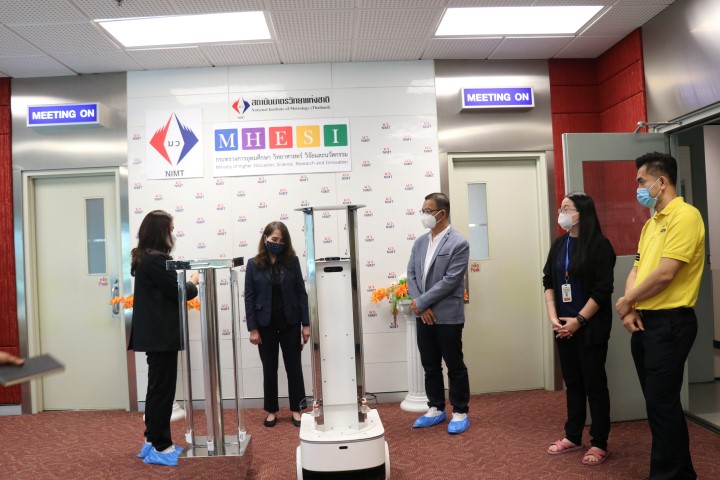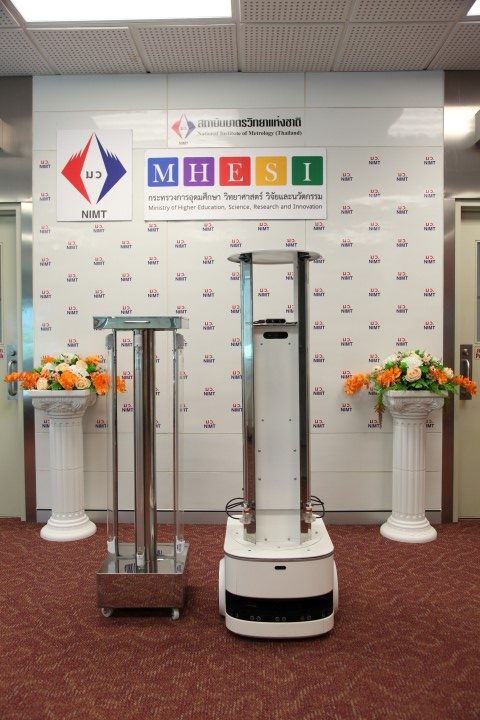 สถาบันมาตรวิทยาแห่งชาติ กระทรวงการอุดมศึกษา วิทยาศาสตร์ วิจัยและนวัตกรรม ร่วมมือกับเอกชน บริษัท ซีนเนอร์ยี่ เทคโนโลยี จำกัด เพื่อยกระดับหุ่นยนต์เครื่องต้นแบบ ให้เกิดประสิทธิภาพในการยับยั้งสถานการณ์แพร่ระบาดของโควิด-19 ในปัจจุบัน โดยที่ความร่วมมือในครั้งนี้ฝ่ายมาตรวิทยาอุณหภูมิและแสง สถาบันมาตรวิทยาแห่งชาติได้ให้ความอนุเคราะห์ในการทดสอบปริมาณความเข้มแสง (Irradiance) ที่ระยะต่างๆ เพื่อที่จะได้ทราบว่า ในระยะที่แตกต่างกัน จะใช้เวลาในการฆ่าเชื้อแตกต่างกันเท่าไร รวมทั้งอายุการใช้งานของหลอดและประสิทธิภาพการถดถอย (Live circle of UVC lamp) เพื่อจะได้ทราบถึงอายุการใช้งานและประสิทธิภาพของหลอดยูวีซี ทั้งนี้บริษัท ซีนเนอร์ยี่ เทคโนโลยี จำกัด เป็นผู้ให้บริการงานออกแบบและผลิตอุปกรณ์อิเล็กทรอนิกส์และ Smart Solutions ที่ตอบโจทย์ แก้ไขปัญหาด้วยนวัตกรรมและเทคโนโลยี ทั้ง 2 หน่วยงานได้เล็งเห็นถึงความสำคัญและมีความตั้งใจที่จะพัฒนาอุปกรณ์ หุ่นยนต์รังสียูวีเพื่อฆ่าเชื้อโรคตัวต้นแบบ (UV Robot) ที่จะเป็นประโยชน์ต่อสถานพยาบาล อาคารสำนักงาน และพื้นที่ระบบปิดอื่นๆ โดยบริษัทจะนำเครื่องต้นแบบดังกล่าวไปพัฒนาเพื่อให้เกิดประสิทธิภาพสูงสุด และทำการส่งมอบให้กับโรงพยาบาลต่างๆ ต่อไปในเร็วๆ นี้ ในการนี้นางอัจฉรา เจริญสุข ผู้อำนวยการ มว. พร้อมด้วย นายอนุสรณ์ ทนหมื่นไวย รองผู้อำนวยการ และ ร.ท.อุทัย นรนิ่ม ผู้ช่วยผู้อำนวยการ พร้อมด้วยนักมาตรวิทยา ฝ่ายมาตรวิทยาอุณหภูมิและแสง ให้การต้อนรับคุณนิติ เมฆหมอก กรรมการผู้จัดการ คุณรัศมี สืบชมภู รองกรรมการผู้จัดการ คุณณัฐวุฒิ อิ่มใจ Product Engineer คุณกร โชติพิทักษกุล Software Engineer และคุณสัจจาพร พิลึก Business Development จากบริษัท ซีนเนอร์ยี่ เทคโนโลยี จำกัด ในการส่งมอบ UV Robot เครื่องต้นแบบ ตามวัตถุประสงค์ของทั้ง 2 หน่วยงานต่อไป ณ อาคารผดุงมาตร มว. จ.ปทุมธานี