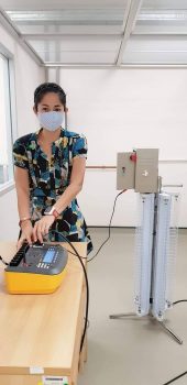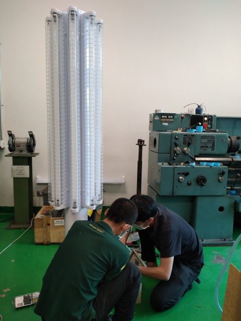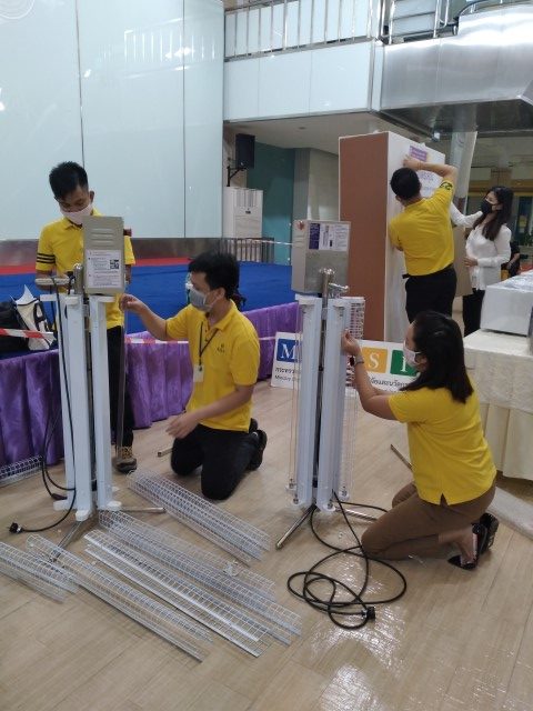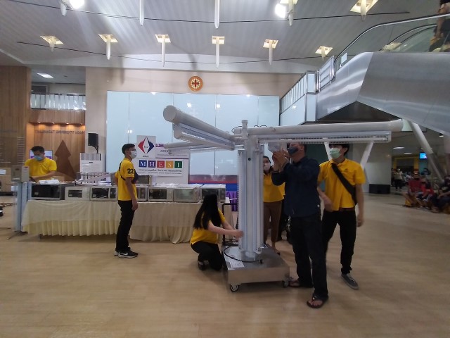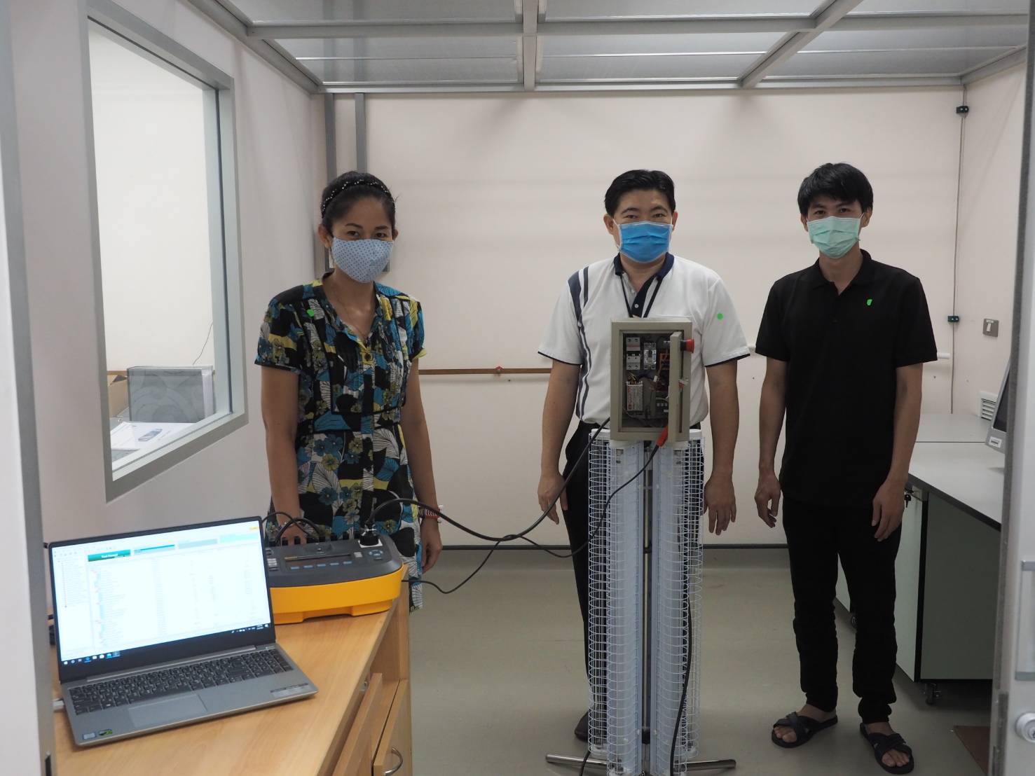 นายชยุตม์ เจริญกิจ และนายณัฐพงศ์ ดำด้วง นักมาตรวิทยาปฏิบัติการ กลุ่มงานแสงและสี ฝ่ายมาตรวิทยาอุณหภูมิและแสง พร้อมด้วยนายประมาณ จันทรักษา วิศวกรชำนาญการพิเศษ กลุ่มงานนวัตกรรมและพัฒนาเครื่องมือวัด ได้รับเชิญจากเจ้าหน้าที่สาขาการพยาบาลบริการพิเศษ ฝ่ายการพยาบาล โรงพยาบาลธรรมศาสตร์เฉลิมพระเกียรติ ในโอกาสเข้าบรรยายให้ความรู้เกี่ยวกับอุปกรณ์ฆ่าเชื้อไวรัสโคโรนา 2019 (COVID-19) ที่สถาบันมาตรวิทยาแห่งชาติ กระทรวงการอุดมศึกษา วิทยาศาสตร์ วิจัยและนวัตกรรม ร่วมมือกับโรงพยาบาลธรรมศาสตร์เฉลิมพระเกียรติ ในการประดิษฐ์อุปกรณ์ด้วยเทคโนโลยีมาตรวิทยาที่ได้ทำการวัดอย่างแม่นยำในห้องปฏิบัติการของสถาบันที่มีการยอมรับในระดับสากล จำนวน 3 รายการประกอบด้วย เครื่องฆ่าเชื้อในห้องผู้ป่วยโรงพยาบาลภาคสนาม 2 แบบด้วยกัน เครื่องฆ่าเชื้อในรถพยาบาล จำนวน 2 เครื่อง เครื่องฆ่าเชื้อด้วยรังสียูวีซี ที่ดัดแปลงมาจากไมโครเวฟที่ใช้แล้ว จำนวน 15 เครื่อง โดยมีวัตถุประสงค์เพื่อให้เกิดความมั่นใจว่าอุปกรณ์ทั้งหมดมีความปลอดภัยตามมาตรฐานสากล ทำให้บคลากรทางการแพทย์เกิดความเชื่อถือในเครื่องมือทางการแพทย์ตามวัตถุประสงค์ของทั้ง 2 หน่วยงานร่วมกัน ณ โรงพยาบาลธรรมศาสตร์เฉลิมพระเกียรติ อ.คลองหลวง จ.ปทุมธานี