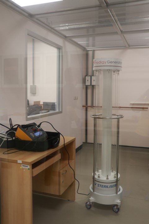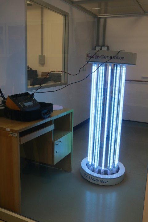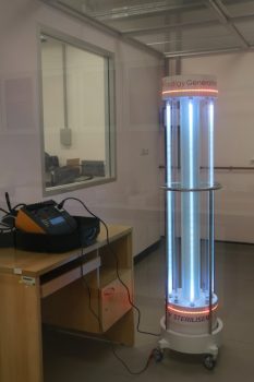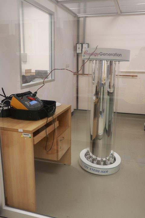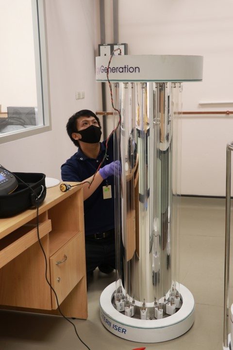 นายพลวัฒน์ จำปาเรือง นายชยุตม์ เจริญกิจ และนายณัฐพงศ์ ดำด้วง นักมาตรวิทยาปฏิบัติการ กลุ่มงานแสงและสี ฝ่ายมาตรวิทยาอุณหภูมิและแสง พร้อมด้วย ดร.พัชริญา เพชรผ่อง นักมาตรวิทยาชำนาญการ และนายไพโรจน์ รัตนางกูร หัวหน้ากลุ่มงานเสียงและการสั่นสะเทือน สถาบันมาตรวิทยาแห่งชาติ ได้ทำการตรวจวัดประสิทธิภาพสำหรับหลอดยูวีซี ฆ่าเชื้อโควิด-19 และตรวจสอบ Electrical Safety Analyzer ของอุปกรณ์ต้นแบบ ของบริษัท เดอะ โพรดิจี เจนเนอร์เรชั่น จำกัด ซึ่งได้ทำต้นแบบไว้ 3 แบบด้วยกัน โดยมีวัตถุประสงค์เพื่อจะมอบหลอดยูวีซีดังกล่าว ให้กับโรงพยาบาลและสถานที่ราชการต่างๆ เพื่อเป็นสาธารณประโยชน์ต่อไป ณ อาคารผดุงมาตร มว. จ.ปทุมธานี