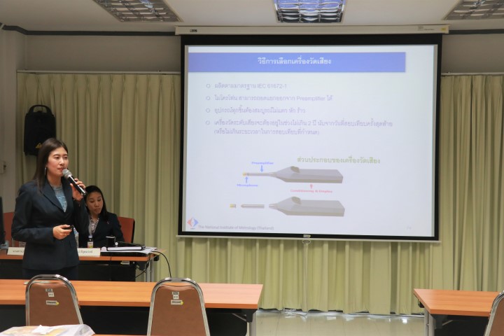 ส่วนฝึกอบรม กลุ่มงานพัฒนาธุรกิจ ฝ่ายนโยบายและยุทธศาสตร์ จัดอบรมในหัวข้อ “ การใช้งานเครื่องมือวัดด้านเสียงและการพิจารณาค่าในใบรายงานผลการสอบเทียบ ” บรรยายให้ความรู้แก่ผู้เข้าอบรมที่สนใจทั้งจากภาครัฐ เอกชน และอุตสาหกรรม โดยนาง สุรัตน์ ลีอุดมวงษ์ นักมาตรวิทยาชำนาญการพิเศษ และนางสาว ปาณิศรา คงถาวร นักมาตรวิทยาปฏิบัติการ กลุ่มงานเสียงและการสั่นสะเทือน โดยมีวัตถุประสงค์เพื่อให้ผู้เข้าอบรมสามารถเข้าใจหลักวิธีการของเครื่องวัดเสียงและสามารถเลือกปรับค่าเครื่องวัดเสียงก่อนการนำไปใช้งานได้ถูกต้อง รวมถึงสามารถเข้าใจหลักการและวิธีการในการพิจารณาค่าจากใบรายงานผลการสอบเทียบ ณ อาคารสำนักงานกลาง มว. จ.ปทุมธานี