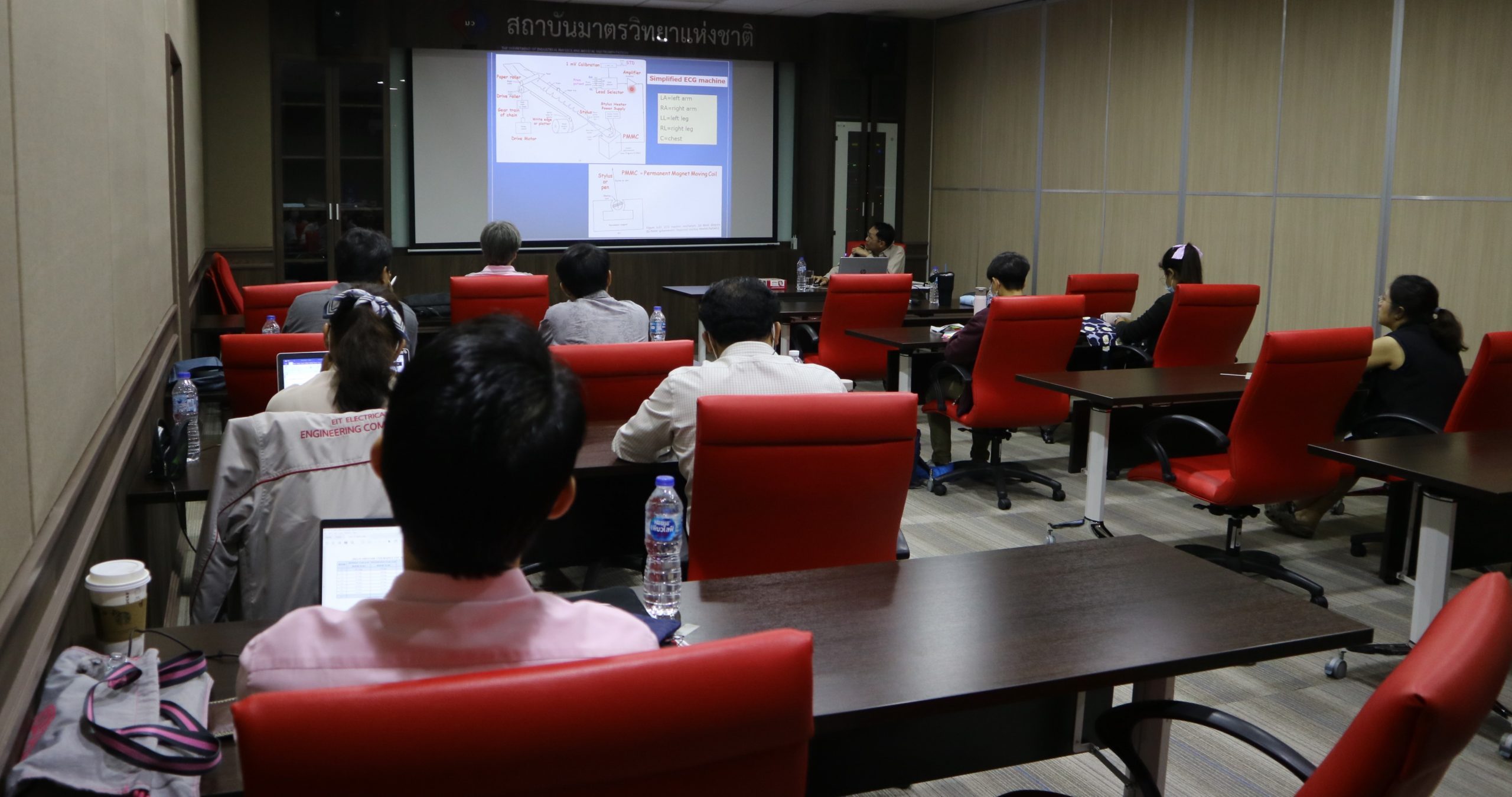 คณะทำงานจัดทำร่างคู่มือการสอบเทียบ การวัด และการทวนสอบเครื่องมือแพทย์ จัดอบรม มาตรวิทยาทางการแพทย์ หัวข้อ เครื่องวัดสัญญาณคลื่นไฟฟ้าหัวใจ (Electrocardiograph) และเครื่องศัลยกรรมด้วยไฟฟ้า (Electrosurgical Unit) บรรยายโดย รศ.ดร.ชิษณุทัศน์ บรรลือโชคชัย จากมหาวิทยาลัยเทคโนโลยีพระจอมเกล้าพระนครเหนือ วัตถุประสงค์ของการจัดประชุมในครั้งนี้เพื่อให้ความรู้แก่พนักงานของสถาบัน ผู้เข้าร่วมอบรมทั้งจากภาครัฐและเอกชน และเพื่อจัดทำร่างคู่มือการสอบเทียบ การวัด และการทวนสอบเครื่องมือแพทย์ต่อไป ณ อาคารมาตรธำรง มว. จ.ปทุมธานี