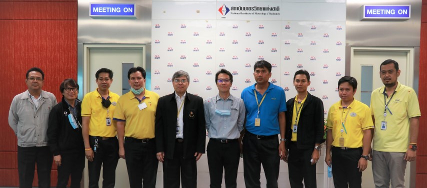นายวิรุณ เล้าพรพิชยานุวัฒน์ รักษาการหัวหน้าฝ่ายมาตรวิทยาเชิงกล ให้การต้อนรับ นายยงยุทธ ศรีชัย ผู้อำนวยการฝ่ายบริหารด้านการใช้ไฟฟ้าและกิจการเพื่อสังคม พร้อมด้วยเจ้าหน้าที่จากการไฟฟ้าฝ่ายผลิตแห่งประเทศไทย ในโอกาสเข้าเยี่ยมชมห้องปฏิบัติการฝ่ายมาตรวิทยาเชิงกล และห้องปฏิบัติการฝ่ายมาตรวิทยาไฟฟ้าของสถาบันมาตรวิทยาแห่งชาติ ซึ่งฝ่ายปฏิบัติการด้านการใช้ไฟฟ้าและกิจการเพื่อสังคม การไฟฟ้าฝ่ายผลิตแห่งประเทศไทย (กฟผ.) เป็นหน่วยงานที่รับผิดชอบในการรณรงค์ส่งเสริมให้เกิดการใช้พลังงานไฟฟ้าอย่างมีประสิทธิภาพ สนับสนุนให้เกิดการพัฒนาเทคโนโลยีของอุปกรณ์ไฟฟ้าที่มีประสิทธิภาพสูง และมีราคาที่เหมาะสม ผ่านโครงการ “ฉลากประหยัดไฟฟ้าเบอร์ 5” ที่ต้องกำหนดเกณฑ์ และมาตรฐานการทดสอบ รวมถึงการสุ่มทดสอบอุปกรณ์ไฟฟ้าที่ติดฉลากประหยัดไฟฟ้าเบอร์ 5 อย่างต่อเนื่อง โดยวัตถุประสงค์ของการเข้าเยี่ยมชมห้องปฏิบัติการในครั้งนี้เพื่อพัฒนาบุคลากรให้มีทักษะและความรู้เพิ่มเติมในด้านมาตรวิทยา และยังจะได้ทราบวิธีการวัดที่ถูกต้องตามหลักมาตรฐานสากลอีกด้วย ณ อาคารผดุงมาตร มว. จ.ปทุมธานี