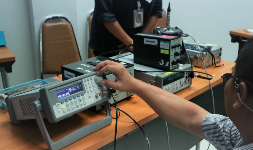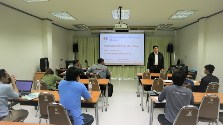 ส่วนฝึกอบรม กลุ่มพัฒนาธุรกิจ ฝ่ายนโยบายและยุทธศาสตร์ จัดอบรมในหัวข้อ “การสอบเทียบเครื่อง Vibration Meter” บรรยายให้ความรู้แก่ผู้เข้าอบรมที่สนใจทั้งจากภาครัฐ เอกชน และอุตสาหกรรม โดย นาย ไพโรจน์ รัตนางกูร หัวหน้ากลุ่มงานเสียงและการสั่นสะเทือน และนางสาว อริญชยา พันธุ์พำนัก นักมาตรวิทยาปฏิบัติการ กลุ่มงานเสียงและการสั่นสะเทือน โดยมีวัตถุประสงค์เพื่อให้ผู้เข้าอบรมได้ทราบถึงโครงสร้าง องค์ประกอบของเครื่องวัดการสั่นสะเทือนรวมทั้งมาตรฐานการสอบเทียบ สามารถสอบเทียบเครื่องวัดการสั่นสะเทือนและรายงานผลการสอบเทียบในใบรายผลได้อย่างถูกต้อง ณ อาคารสำนักงานกลาง มว. จ.ปทุมธานี