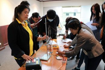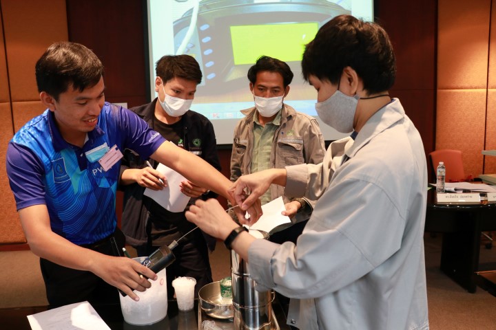 ส่วนฝึกอบรม กลุ่มงานพัฒนาธุรกิจ ฝ่ายนโยบายและยุทธศาสตร์ จัดอบรมในหัวข้อ “การทวนสอบเครื่องมือวัดอุณหภูมิ” บรรยายให้ความรู้แก่ผู้เข้าอบรมที่สนใจทั้งจากภาครัฐ เอกชน และอุตสาหกรรม โดย ดร.อ้อยใจ อ่องหร่าย นักมาตรวิทยาชำนาญการ และนาย อมรเทพ ลี้เกรียงไกร นักมาตรวิทยาปฏิบัติการ กลุ่มงานถ่ายทอดค่ามาตรฐานและความชื้น ฝ่ายมาตรวิทยาอุณหภูมิและแสง โดยมีวัตถุประสงค์เพื่อให้ผู้เข้าอบรมได้มีความเข้าใจในหลักการและข้อควรระวังในการใช้งานเทอโมมิเตอร์ชนิดต่างๆ สามารถเลือกใช้งานเทอร์โมมิเตอร์ได้อย่างถูกต้องเหมาะสมกับลักษณะงาน เข้าใจการสอบเทียบและการนำใบรับรองผลการสอบเทียบเทอร์โมมิเตอร์ไปใช้งานได้อย่างถูกต้อง รวมทั้งยังทวนสอบเทอร์โมมิเตอร์ด้วย Ice point ได้ ณ อาคารสำนักงานกลาง มว. จ.ปทุมธานี