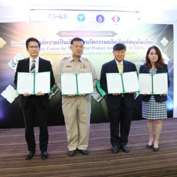 - ผู้บริหารร่วมพิธีเปิดป้าย“ศูนย์ความเป็นเลิศด้านนวัตกรรมผลิตภัณฑ์สมุนไพรไทย”