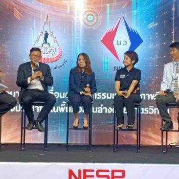 - นางอัจฉรา เจริญสุข ผู้อำนวยการ มว. ร่วมงานเสวนา