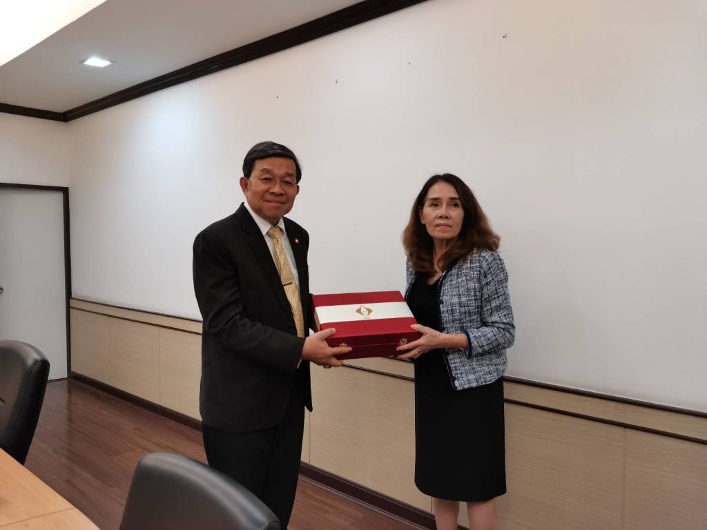 - นางอัจฉรา เจริญสุข ผู้อำนวยการ มว. มอบของที่ระลึก