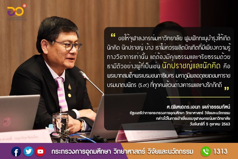 “เราไม่ควรผลิตบัณฑิตที่มีเพียงความรู้ทางวิชาการเท่านั้น แต่ต้องมีคุณธรรมและจริยธรรมด้วย” (5 ตุลาคม 2563)