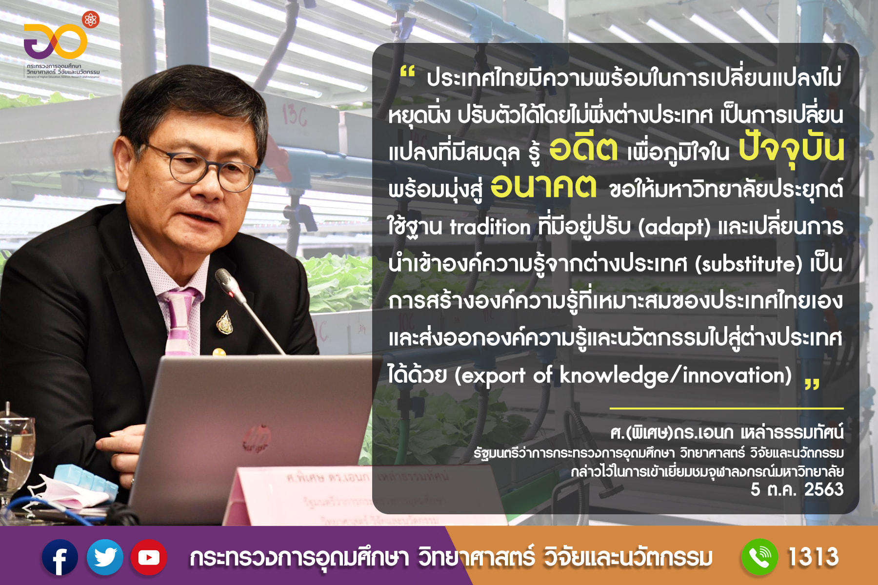 “ประเทศไทยมีความพร้อมในการเปลี่ยนแปลง ไม่หยุดนิ่ง ปรับตัวได้โดยไม่พึ่งต่างประเทศ เป็นการเปลี่ยนแปลงที่มีสมดุล” (15 ตุลาคม 2563)