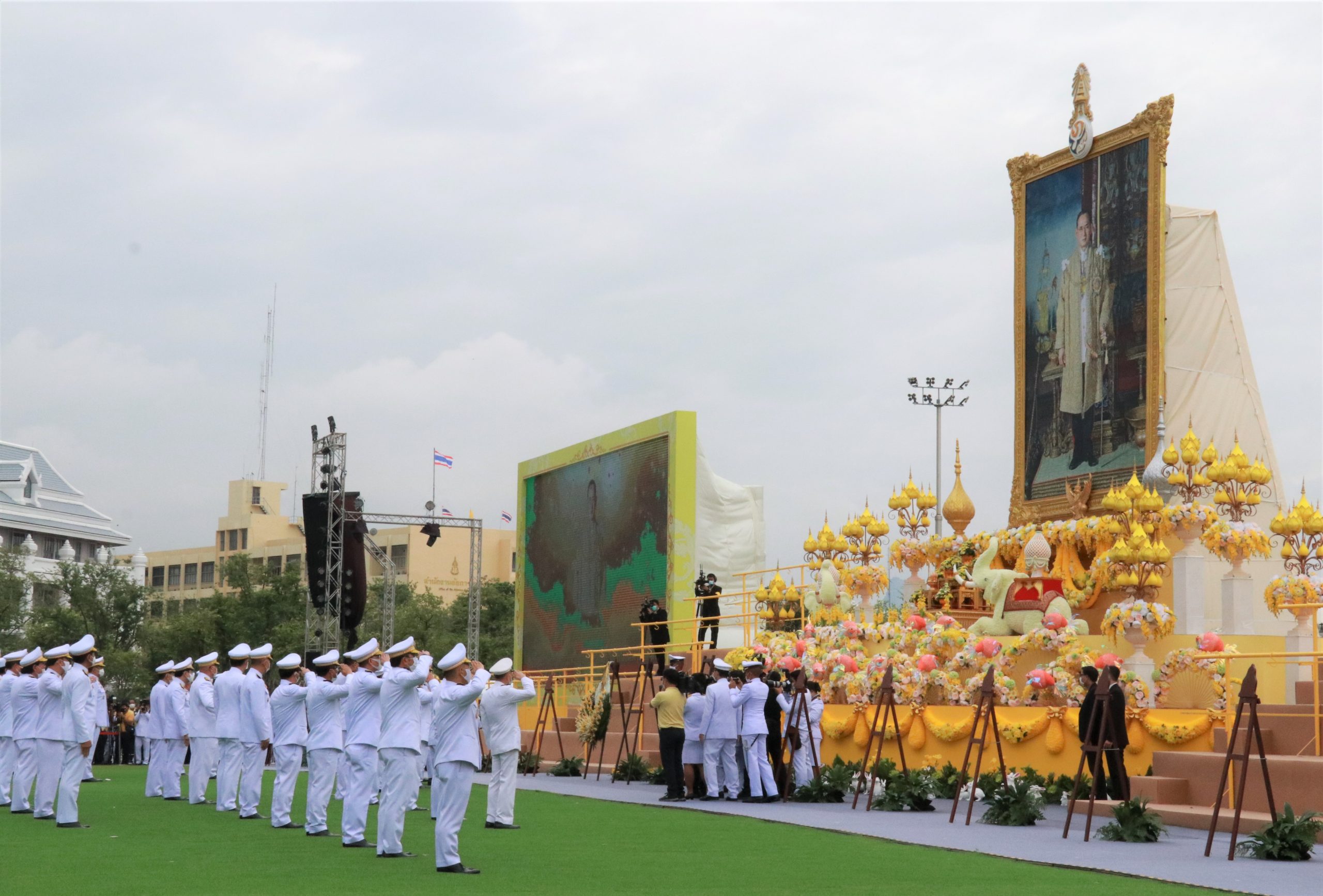 - บรรยากาศภายในพิธีวางพวงมาลาและพิธีถวายบังคม