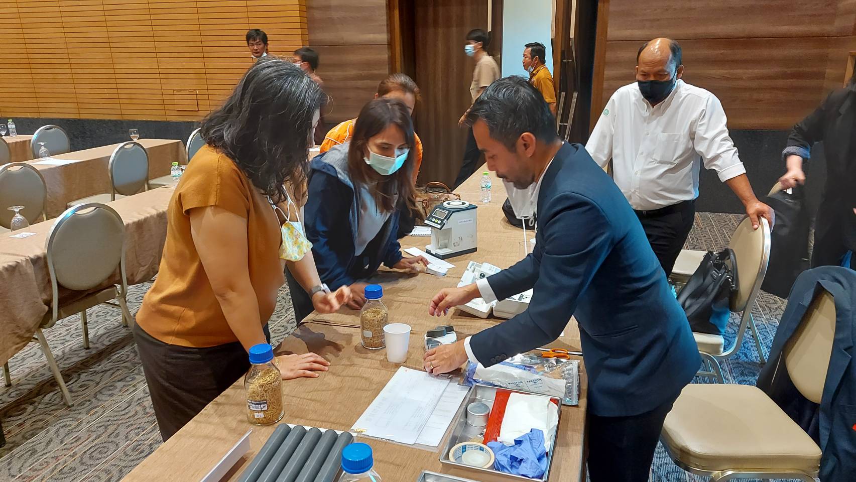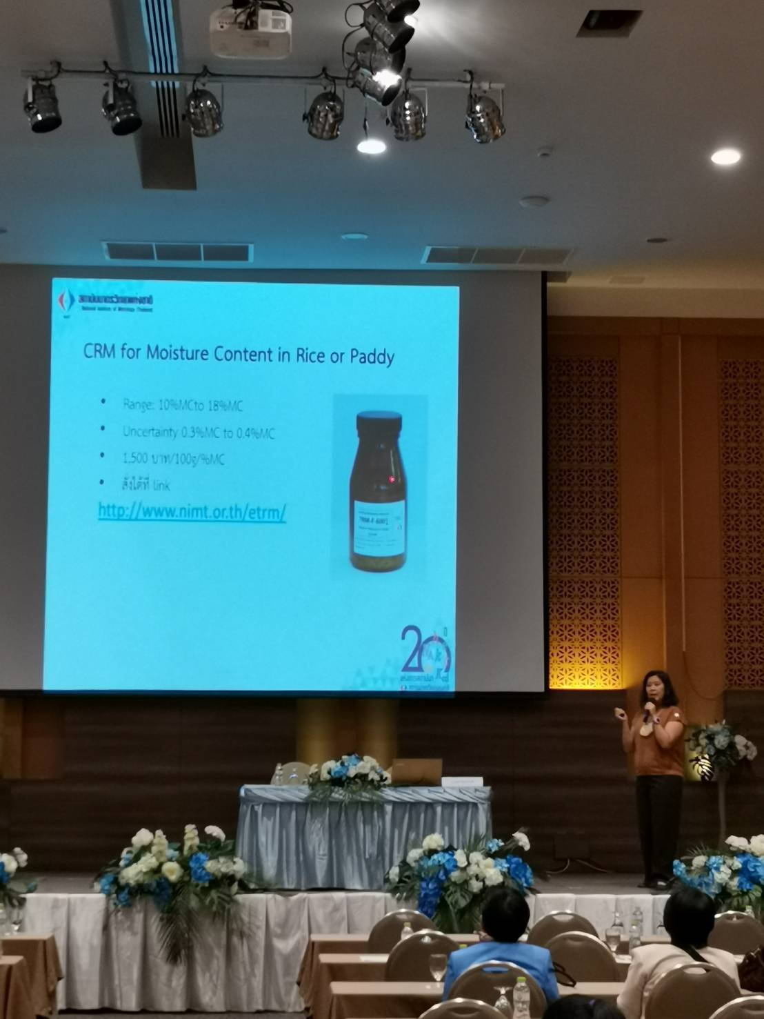 - นางธสร สิงหะเนติ นักมาตรวิทยา ฝ่ายมาตรวิทยาอุณหภูมิและแสง บรรยายเรื่อง การทวนสอบเครื่องวัดความชื้นข้าวตาม ISO 712 และ ISO 7700-1 และหัวข้อ การสอบเทียบเครื่องวัดความชื้นข้าวด้วยสารมาตรฐานอ้างอิงจาก มว.