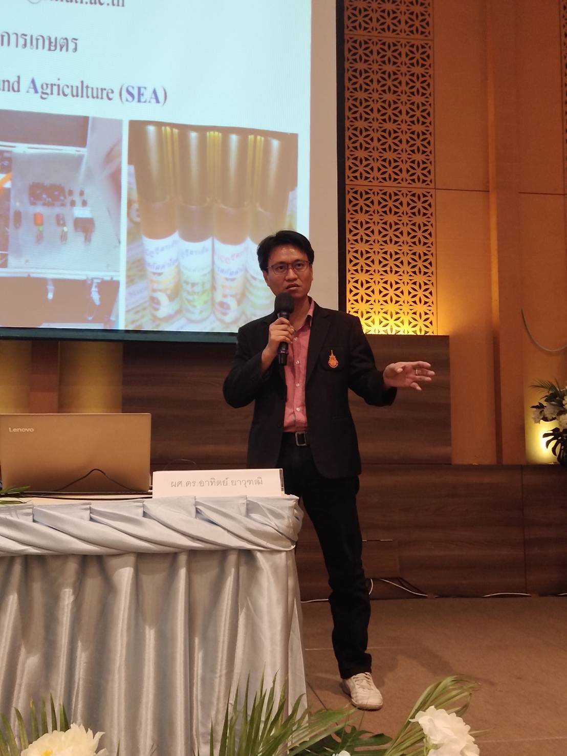 - ผู้ช่วยศาสตราจารย์ ดร.อาทิตย์ ยาวุฑฒิ คณะวิศวกรรมศาตร์ มหาวิทยาลัยเทคโนโลยีราชมงคลล้านนา บรรยายเรื่อง การประยุกต์ใช้หัววัดอัจฉริยะเพื่อการจัดการพื้นที่เกษตรแนวใหม่