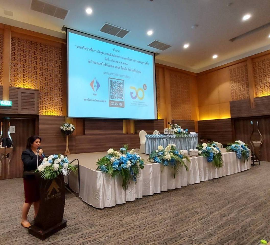 ฝ่ายมาตรวิทยาอุณหภูมิและแสง สถาบันมาตรวิทยาแห่งชาติ จัดสัมมนาในหัวข้อ “มาตรวิทยาเพื่อการวัดคุณภาพผลิตภัณฑ์การเกษตรด้วยการสอบความชื้น” การอบรมครั้งนี้มีวัตถุประสงค์เพื่อให้เกิดการพัฒนาศักยภาพบุคลากรผู้งานเครื่องมือวัดความชื้นในผลิตภัณฑ์ทางการเกษตรแบบไฟฟ้า รวมทั้งต่อยอดความรู้ในการจัดการความถูกต้องและเครื่องวัดความชื้น เพื่อสร้างความตระหนักในกระบวนการวัดที่เกี่ยวข้องในผลิตภัณฑ์ทางการเกษตรให้เป็นไปตามมาตรฐานคุณภาพในระดับสากล รวมถึงต้องการส่งเสริมความเข้าใจเกี่ยวกับการวัด และองค์ประกอบของการวัดอื่นๆ ที่เกี่ยวข้องกับการรักษาผลิตภัณฑ์ทางการเกษตรได้อย่างถูกวิธี อีกทั้งภายในงานยังจัดให้มีคลีนิคมาตรวิทยา สำหรับการตรวจสอบเครื่องมือวัดความชื้นข้าวด้วยเทคโนโลยีวัสดุอ้างอิงความชื้นข้าว ซึ่งผู้ใช้งานสามารถนำข้อมูลที่ได้รับมาใช้เป็นแนวทางในการตรวจสอบการวัดของเครื่องมือได้อีกด้วย กิจกรรมดังกล่าวจัดขึ้น ณ โรงแรมฮอไรซั่นวิลเลจ แอนด์ รีสอร์ท จังหวัดเชียงใหม่
