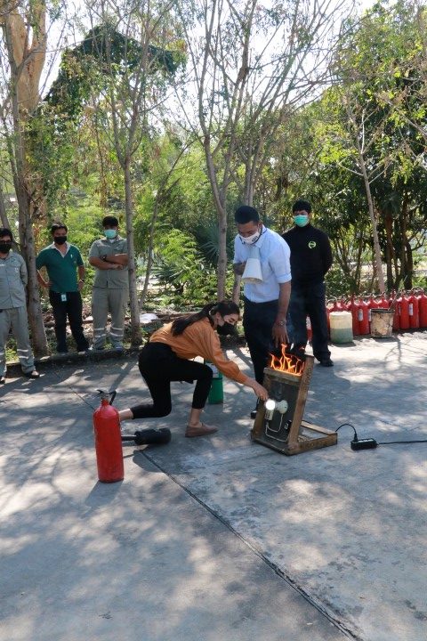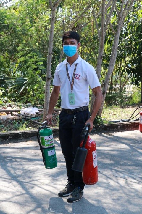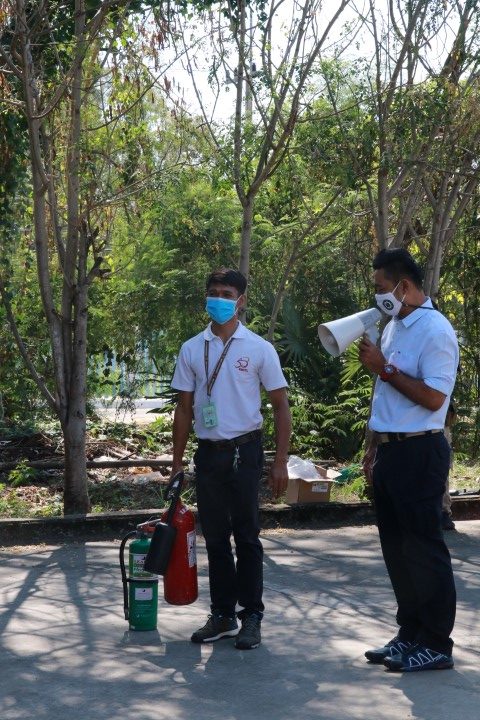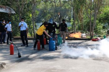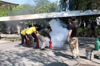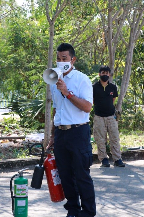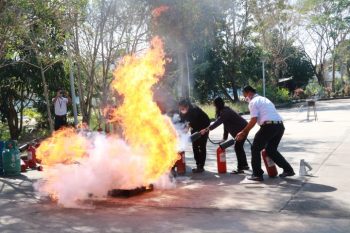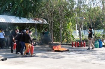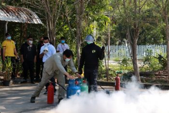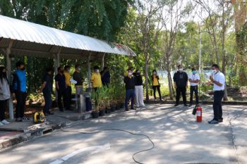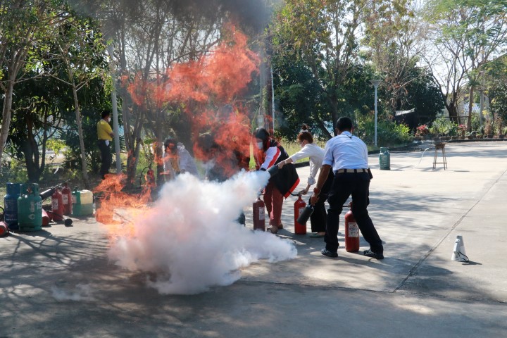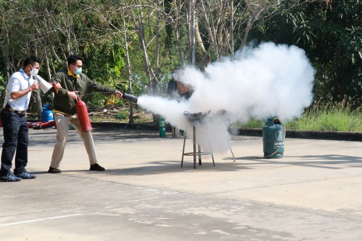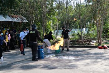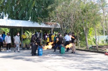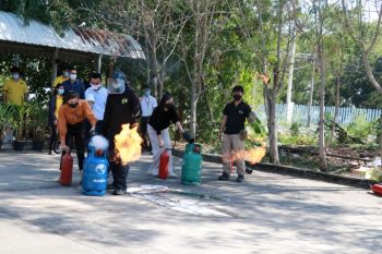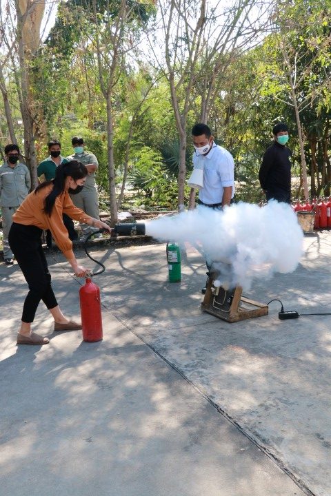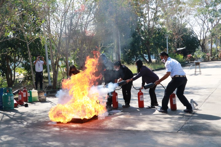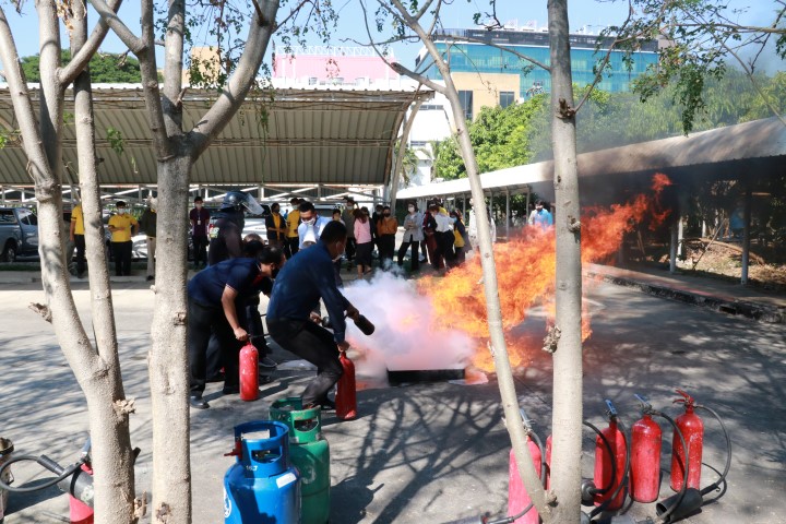 - ฝึกซ้อม/สาธิตการใช้เครื่องมือและวิธีดับเพลิง