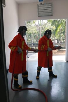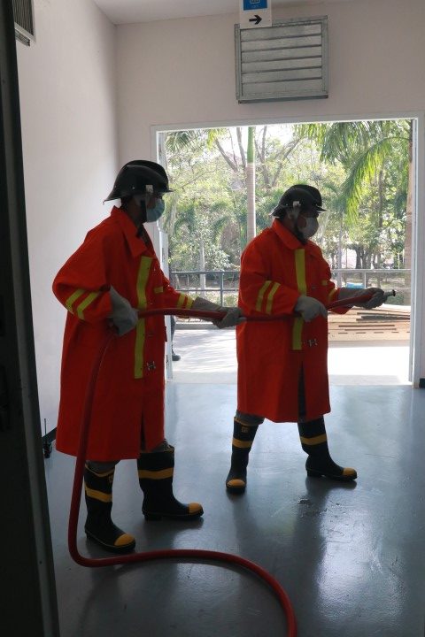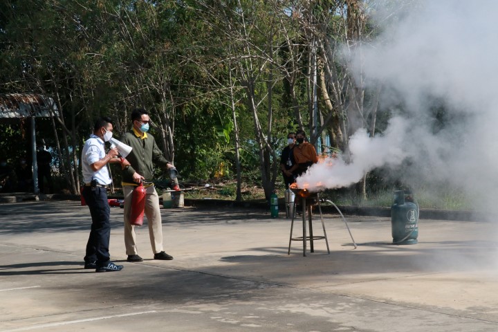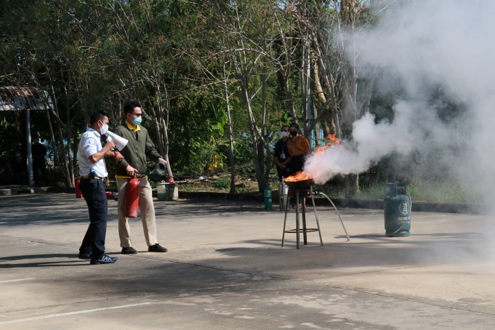 - ฝึกซ้อม/สาธิตการใช้เครื่องมือและวิธีดับเพลิงฝึกซ้อม/สาธิตการใช้เครื่องมือและวิธีดับเพลิง