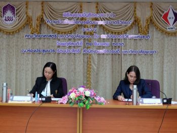 - นางอัจฉรา เจริญสุข ผู้อำนวยการ มว. มอบของที่ระลึกให้ รองศาสตราจารย์ ดร.ชยันต์ บุณยรักษ์ คณบดีคณะวิทยาศาสตร์ มหาวิทยาลัยพะเยา