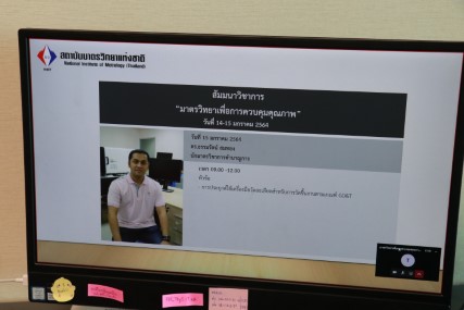 ฝ่ายมาตรวิทยามิติ จัดสัมมนาวิชาการเรื่อง “มาตรวิทยาเพื่อการควบคุมคุณภาพ” บรรยายให้ความรู้แก่ผู้เข้าร่วมสัมมนาโดยนักมาตรวิทยา ฝ่ายมาตรวิทยามิติ โดยในวันแรกของการสัมมนา จะบรรยายในหัวข้อ มาตรวิทยาเบื้องต้น ลักษณะเฉพาะของเกจบล็อกตามมาตรฐาน ISO 3650 หลักการเลือกใช้งานและบำรุงรักษาเกจบล็อก และการสอบเทียบเวอร์เนียร์คาลิปเปอร์ตามมาตรฐาน บรรยายโดย นายศมน เพี้ยงบางยาง ส่วนในวันที่สองจะบรรยายในหัวข้อ การประยุกต์ใช้เครื่องมือวัดละเอียดสำหรับการวัดชิ้นงานตามเกณฑ์ GD&T บรรยายโดย ดร.ธรรมรัตน์ สมทอง และในหัวข้อ หลักการวิเคราะห์และประมวลผลการวัดค่าความแข็ง (Hardness) บรรยายโดย ดร.กิตติสัณห์ มงคลสุทธิรัตน์ วัตถุประสงค์ของการจัดสัมมนาในครั้งนี้เน้นเนื้อหาการประชาสัมพันธ์แผนงานพัฒนาศักยภาพของผู้ประกอบการ และเผยแพร่เทคโนโลยีและนวัตกรรมสมัยใหม่ด้านมาตรวิทยา ซึ่งการสัมมนาในครั้งนี้เป็นการสัมมนาแบบออนไลน์ มีจำนวนผู้เข้าร่วมสัมมนาจำนวน 141 คน ณ อาคารผดุงมาตร มว. จ.ปทุมธานี