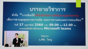 - บรรยายวิชาการในหัวข้อ การเลือกใช้เครื่องมือวัดความดันในภาคอุตสาหกรรมเพื่อการควบคุมคุณภาพการผลิต และการทวนสอบผลการสอบเทียบ แบบออนไลน์