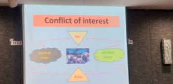 นายมาณพ ติณสิริสุข พนักงานตรวจสอบภายในชำนาญการพิเศษ และนายทศพร เอียดคง หัวหน้ากลุ่มงานบริหารและพัฒนาทรัพยากรบุคคล ฝ่ายบริหารกลาง สถาบันมาตรวิทยาแห่งชาติ (มว.) เข้าร่วมโครงการเสริมสร้างความรู้ด้านการป้องกันและต่อต้านทุจริต หัวข้อ “รู้ไว้ภัยใกล้ตัวกับผลประโยชน์ทับซ้อน” โดยมีวัตถุประสงค์เพื่อสร้างความรู้ ความเข้าใจในการป้องกันผลประโยชน์ทับซ้อนและความผิดเกี่ยวกับการทุจริตในหน้าที่ มีทัศนคติและค่านิยมที่ซื่อสัตย์สุจริต และไม่ยอมรับการทุจริตในทุกรูปแบบ ตลอดจนนำไปใช้เป็นแนวทางการปฏิบัติงานตามกฎระเบียน เพื่อป้องกันทุจริตและประพฤติมิชอบในองค์กร ณ ห้องแซฟไฟร์ ๑-๒ โรงแรมเซ็นจูรี่ พาร์ค กรุงเทพฯ