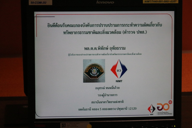 นายอนุสรณ์ ทนหมื่นไวย รองผู้อำนวยการสถาบันมาตรวิทยาแห่งชาติ (มว.) พร้อมด้วย ผู้บริหาร และนักมาตรวิทยา ให้การต้อนรับ พลตำรวจตรีพิทักษ์ อุทัยธรรม ผู้บังคับการปราบปรามการกระทำความผิดเกี่ยวกับทรัพยากรธรรมชาติและสิ่งแวดล้อม สำนักงานตำรวจแห่งชาติ และคณะ ในโอกาสเข้าพบเพื่อปรึกษาหารือ ในเรื่องการจัดทำแนวทางการพัฒนาการปฏิบัติงานภายใต้แผนงานการพัฒนา บุคลากร วิจัย และนวัตกรรมตำรวจเพื่อรองรับอุตสาหกรรมความปลอดภัยในชีวิต และทรัพย์สินของประชาชน ของกองบังคับการปราบปรามการกระทำความผิดเกี่ยวกับทรัพยากรธรรมชาติและสิ่งแวดล้อม (บก.ปทส.) พร้อมทั้งเข้าเยี่ยมชมห้องปฏิบัติของฝ่ายมาตรวิทยาเคมีและชีวภาพ มว. โดยการปรึกษาหารือและเยี่ยมชมห้องปฏิบัติการในครั้งนี้ยังเป็นการแลกเปลี่ยน เรียนรู้ และทำความเข้าใจถึงบทบาท หน้าที่ระหว่าง 2 หน่วยงาน ซึ่งจะนำไปสู่ความร่วมมือในการพัฒนางานด้านมาตรวิทยาเพื่อสนับสนุนการตรวจวัด วิเคราะห์ ด้านการปราบปรามการกระทำความผิดเกี่ยวกับทรัพยากรธรรมชาติและสิ่งแวดล้อมต่อไปในอนาคต ณ อาคารผดุงมาตร และอาคารมาตรธำรง มว.