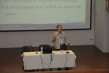 นายประยูร เชี่ยววัฒนา ผู้อำนวยการ มว. เป็นประธานในการประชุมแลกเปลี่ยนความคิดเห็น พร้อมทั้งเแจ้งข้อมูลข่าวสาร และการดำเนินงานของสถาบันที่ผ่านมาให้กับผู้บริหารและพนักงาน มว. ได้รับทราบ เพื่อให้มีเป้าหมาย แนวคิด ทิศทางในการทำงาน พร้อมทั้งสร้างความเข้าใจที่ถูกต้องตรงกันและเกิดความสัมพันธ์อันดีระหว่างกัน นอกจากนี้ส่วนสารบรรณ ฝ่ายนโยบายและยุทธศาสตร์ จัดอบรมวิธีการใช้ระบบ LessPaper บรรยายให้ความรู้แก่พนักงาน โดยนางสาวฐานิยา คัมภิรานนท์ หัวหน้าส่วนสารบรรณ โดยมีจุดประสงค์เพื่อให้ผู้ใช้ในส่วนของ End User ได้มีความรู้ความเข้าใจในระบบ LessPaper และสามารถนำมาใช้งานได้อย่างมีประสิทธิภาพต่อไป ณ อาคารสำนักงานกลาง มว. จ.ปทุมธานี