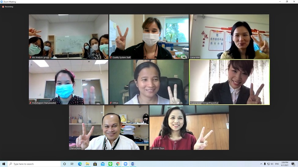 ร.ท.อุทัย นรนิ่ม ผู้ช่วยผู้อำนวยการ และผู้จัดการระบบคุณภาพ มว. ดร. จรัญ ยะฝา หัวหน้าฝ่ายมาตรวิทยาเคมีและชีวภาพ ดร. กิตติยา เชียร์แมน หัวหน้ากลุ่มงานวิเคราะห์ชีวภาพ พร้อมด้วยนักมาตรวิทยาในกลุ่มงานวิเคราะห์ชีวภาพ รวมทั้ง นางสาวรัคณาวรรณ วงศ์พิทยาดิศัย นักมาตรวิทยาชำนาญการพิเศษ ฝ่ายมาตรวิทยาเชิงกล และผู้ช่วยผู้จัดการคุณภาพ ISO/IEC 17025 ร่วมประชุมการตรวจประเมินระบบคุณภาพ ISO/IEC 17025 และ/หรือ ISO 17034 แบบระยะไกล (Remote assessment) ซึ่งเป็นการตรวจประเมินครั้งแรก โดยมีผู้ตรวจประเมินด้านระบบคุณภาพ (Quality Expert) จากสำนักงานมาตรฐานผลิตภัณฑ์อุตสาหกรรม (สมอ.) คือ คุณศิโรรัตน์ ทอนฮามแก้ว และผู้ตรวจประเมินด้านเทคนิคต่างประเทศ (ISO/IEC 17025 และ ISO 17034) (Technical Expert) คือ Dr. Lianhua Dong จาก National Institute of Metrology (NIM), China ซึ่งกิจกรรมนี้จะไปสนับสนุนอุตสาหกรรมอาหารฮาลาล เช่นวิธีการวัด DNA ของหมูและวัว เพื่อตรวจสอบการปนเปื้อนหรือการปลอมปนของเนื้อหมูในเนื้อวัว และวัสดุอ้างอิงสำหรับการตรวจ DNA หมูและวัว นอกจากนี้มีรายการวัดเกี่ยวกับการการปนเปื้อนพืช GMOs และรายการวัดที่สนับสนุนการวัดทางการแพทย์ที่เกี่ยวกับการตรวจหา DNA ของยีนส์ที่กลายพันธุ์ซึ่งเป็นสาเหตุของการเกิดโรคมะเร็งอีกด้วย
