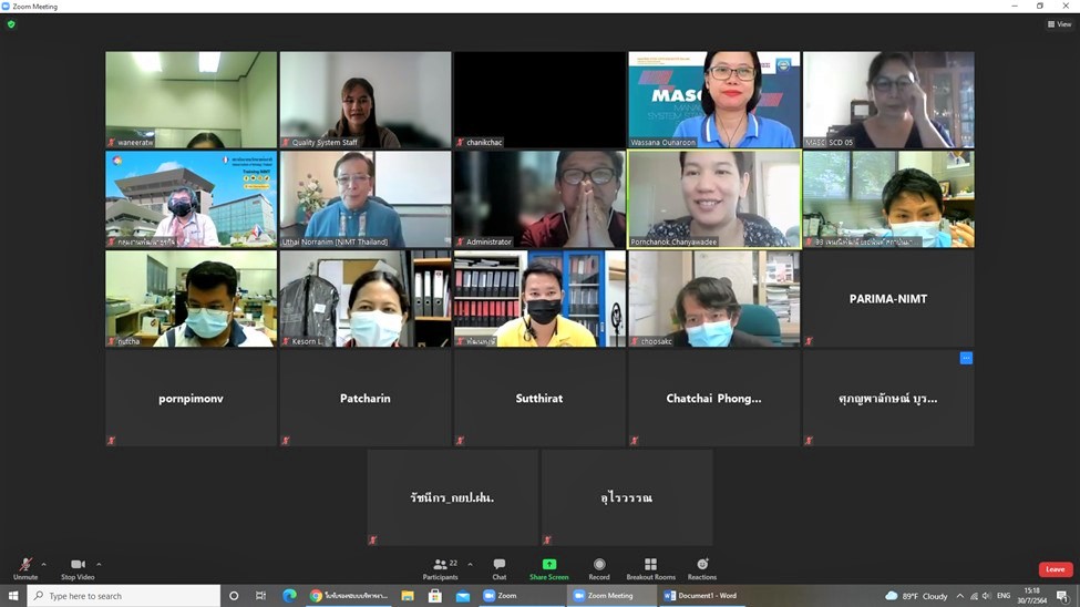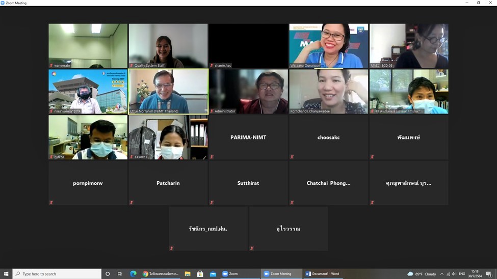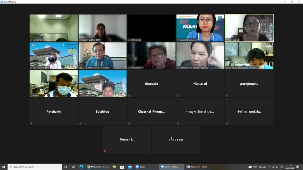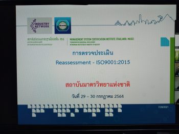 ร.ท.อุทัย นรนิ่ม ผู้ช่วยผู้อำนวยการ และผู้จัดการระบบคุณภาพ มว. พร้อมด้วยผู้บริหารและเจ้าหน้าที่ให้การต้อนรับนางสาวนภาวรรณ เจริญยิ่ง หัวหน้าผู้ตรวจประเมิน และนางสาววาสนา อุ่นอรุณ ผู้ตรวจประเมิน จากสถาบันรับรองมาตรฐานไอเอสโอ (Management System Certification Institute (Thailand), MASCI) วัตถุประสงค์ของการตรวจประเมินในครั้งนี้เพื่อตรวจสอบว่าองค์กรได้มีการจัดทำระบบสอดคล้องตามมาตรฐานการรับรอง องค์กรได้มีการปฏิบัติตามกฎหมาย กฎระเบียบและขั้นตอนการดำเนินงานที่องค์กรกำหนด และเพื่อตรวจสอบว่าองค์กรได้มีการนำระบบไปใช้อย่างมีประสิทธิผล มีการนำไปปฏิบัติอย่างสม่ำเสมอ มีการปรับปรุงอย่างต่อเนื่อง มีการปฏิบัติตามระเบียบตามหลักเกณฑ์และเงื่อนไขของสถาบัน รวมทั้งเพื่อตรวจติดตามผลการแก้ไขข้อบกพร่องที่พบจากการตรวจประเมินครั้งที่ผ่านมา โดยกลุ่มงานที่ได้รับตรวจประเมินได้แก่ กลุ่มงานพัฒนาธุรกิจ กลุ่มงานสารบรรณและการประชุม กลุ่มงานยุทธศาสตร์และประเมินผล กลุ่มงานเทคโนโลยีสารสนเทศ กลุ่มงานบริหารและพัฒนาทรัพยากรบุคคล กลุ่มงานบัญชีการเงินและพัสดุ กลุ่มงานอาคารสถานที่และธุรการ และสุดท้ายกลุ่มงานสื่อสารองค์การ โดยการตรวจประเมินดังกล่าวเป็นการจัดแบบออนไลน์ ณ สถาบันมาตรวิทยาแห่งชาติ มว. จ.ปทุมธานี