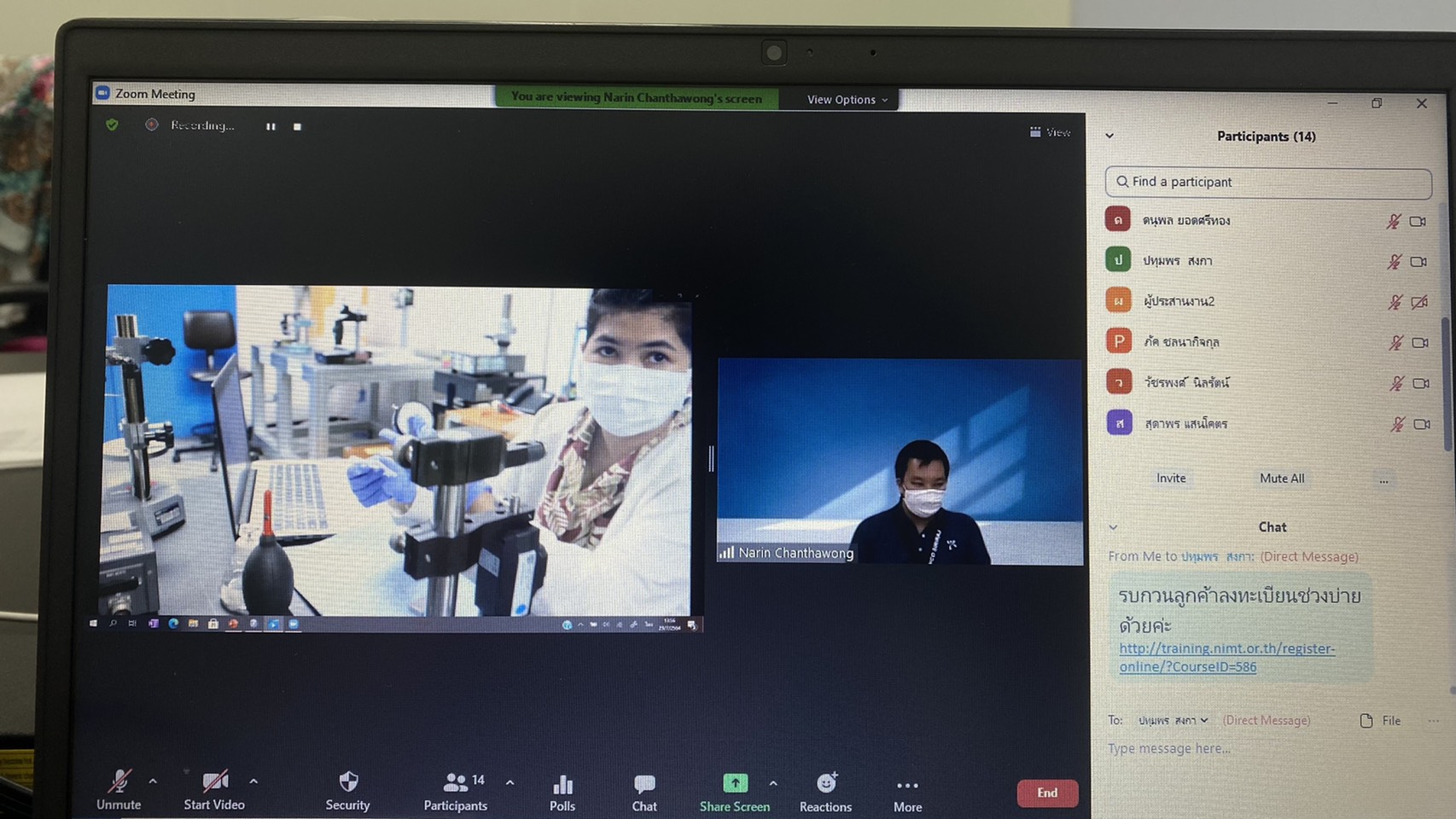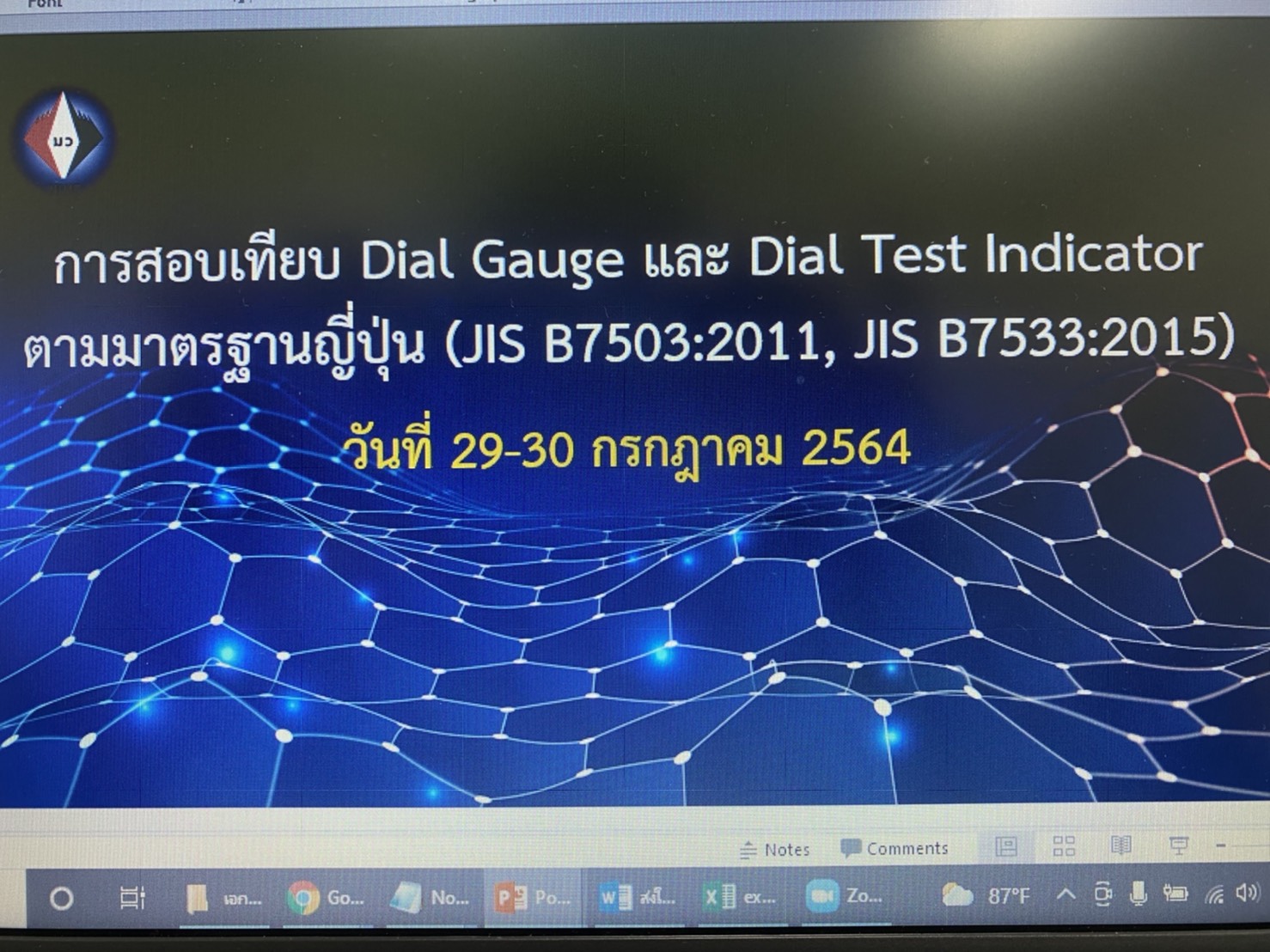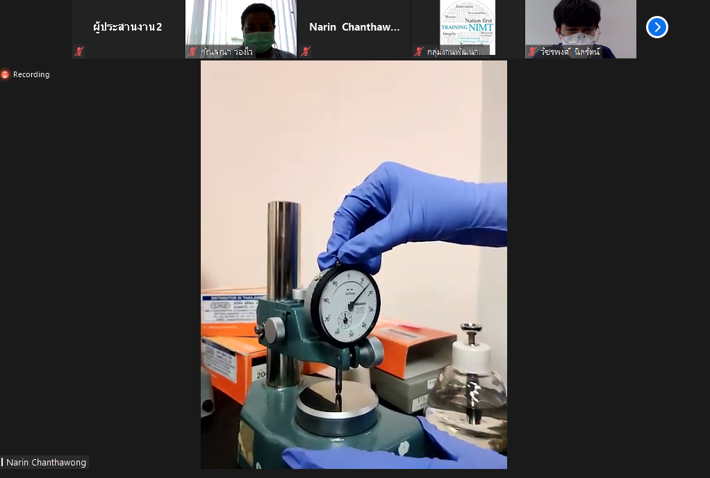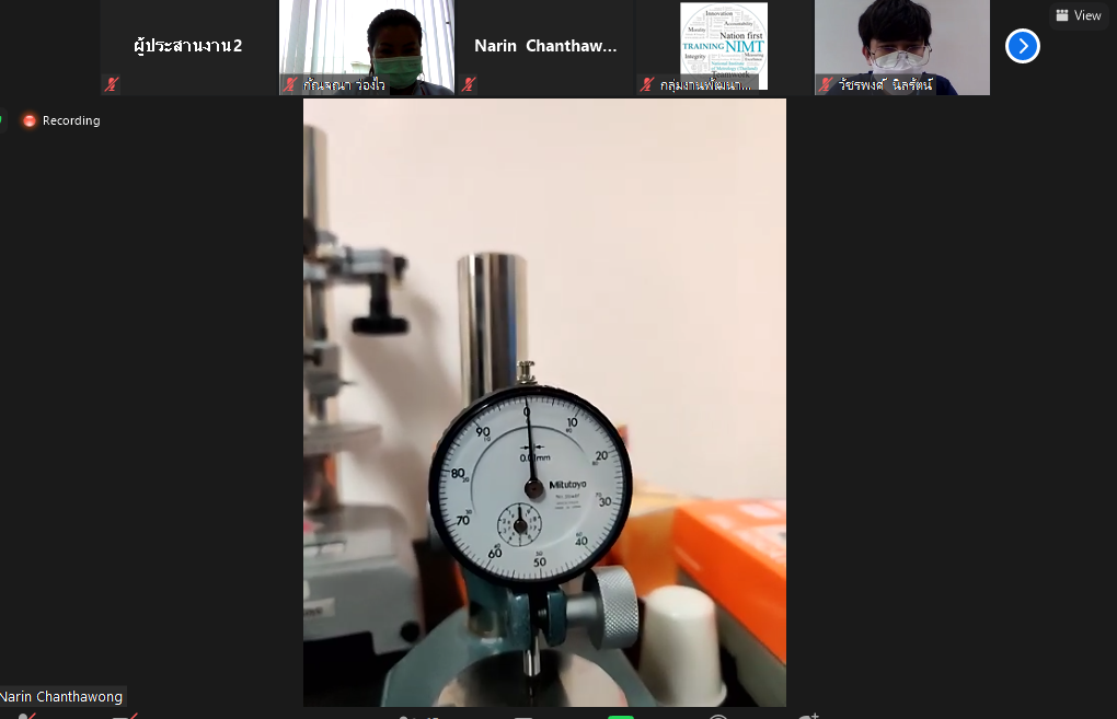 ส่วนฝึกอบรม กลุ่มงานพัฒนาธุรกิจ ฝ่ายนโยบายและยุทธศาสตร์ จัดอบรมประจำปีหัวข้อ การสอบเทียบ Dial Gauge และ Dial Test Indicator ตามมาตรฐานญี่ปุ่น บรรยายให้ความรู้แก่ผู้เข้าอบรมที่สนใจจากหน่วยงานทั้งจากภาครัฐ เอกชน และอุตสาหกรรม โดยดร.นรินทร์ จันทวงศ์ นักมาตรวิทยาชำนาญการ กลุ่มงานมาตรวิทยานาโน และดร.กิตติสัณห์ มงคลสุทธิรัตน์ นักมาตรวิทยาชำนาญการ ฝ่ายมาตรวิทยามิติ โดยมีวัตถุประสงค์เพื่อให้ผู้เข้าอบรมสามารถสอบเทียบ Dial Gauge และ Dial Test Indicator ได้ สามารถใช้งานและบำรุงรักษา Dial Gauge Tester ได้ และสามารถประเมินค่าความไม่แน่นอนของการสอบเทียบได้อย่างถูกต้อง โดยการอบรมในครั้งนี้เป็นการอบรมออนไลน์ ณ สถาบันมาตรวิทยาแห่งชาติ มว. จ.ปทุมธานี