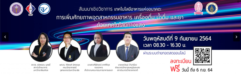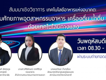 - สัมมนาเชิงวิชาการ หัวข้อ “เทคโนโลยีอาหารแห่งอนาคต : การเพิ่มศักยภาพอุตสาหกรรมอาหาร เครื่องดื่ม น้ำดื่มและยา ด้วยเทคโนโลยีทางแสง