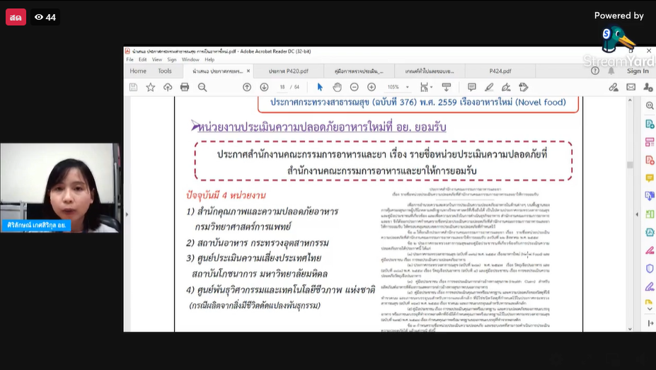 - นางสาวศิริลักษณ์ เกศศิริกุล กองอาหาร สำนักงานอาหารและยา