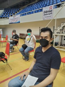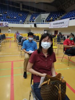 - พนักงาน มว. ระหว่างนั่งรอเฝ้าระวัง หลังการฉีดวัคซีนแล้ว