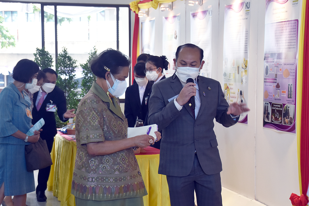 - ดร.จรัญ ยะฝา ผช.ผมว. ถวายรายงานนิทรรศการ มว.