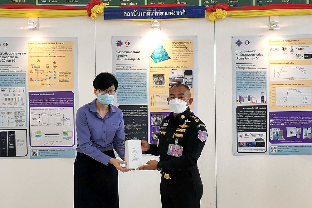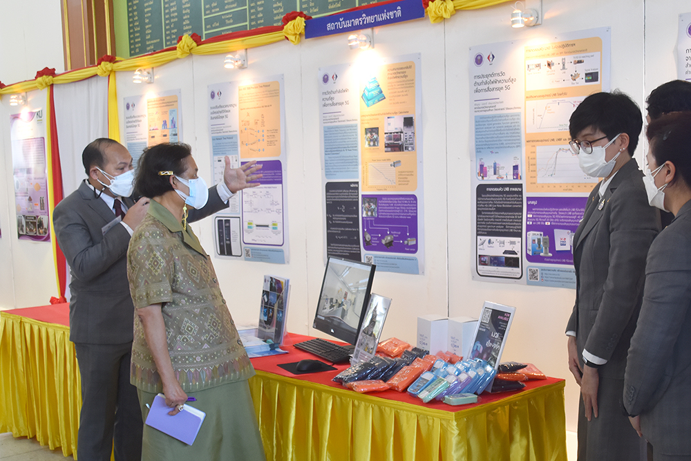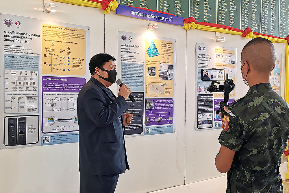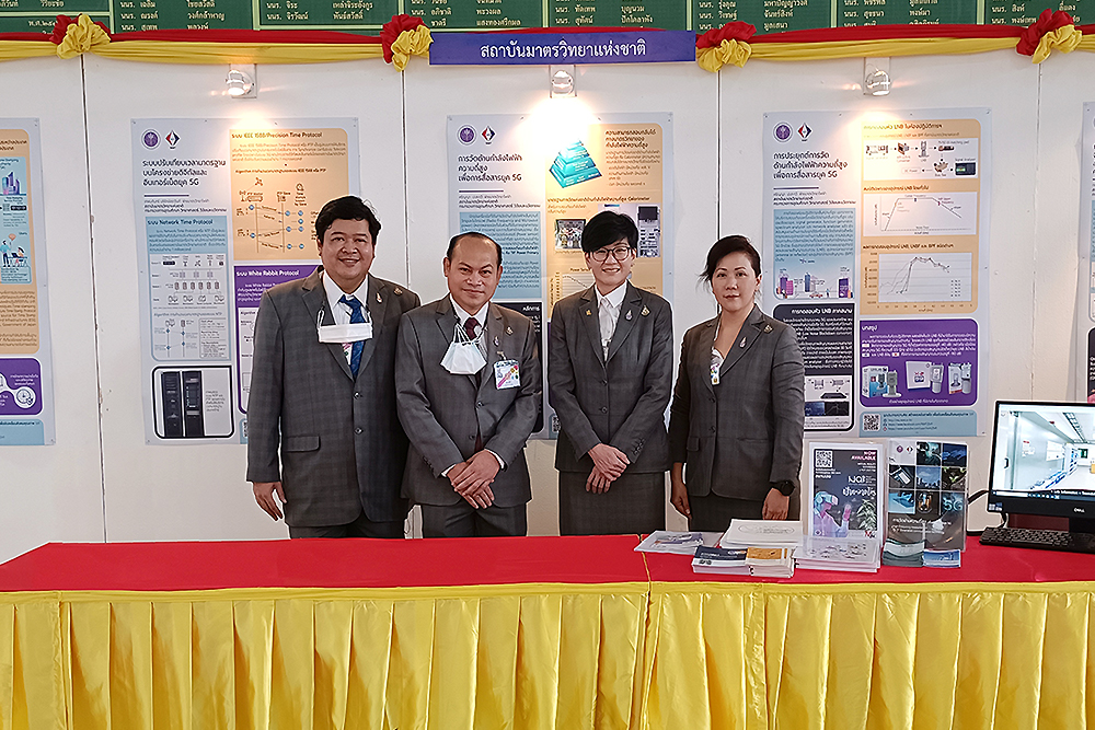 - นายเทพบดินทร์ บริรักษ์อราวินท์ นำเสนอผลงาน เรื่อง “ระบบปรับเทียบเวลามาตรฐานผ่านโครงข่ายดิจิทัลและอินเทอร์เน็ตยุค 5G” และเรื่อง “ระบบการวัดกำลังไฟฟ้าความถี่สูง เพื่อการสื่อสารยุค 5G”