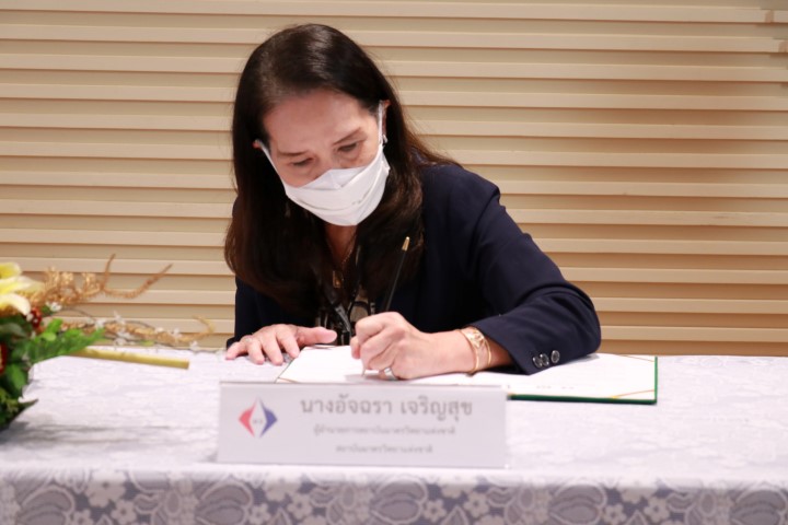 - นางอัจฉรา เจริญสุข ผู้อำนวยการ มว. ลงนาม