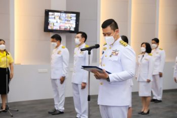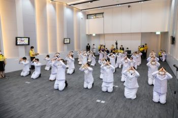 พิธีวางพานพุ่ม ณ ห้องแถลงข่าว อาคารพระจอมเกล้า