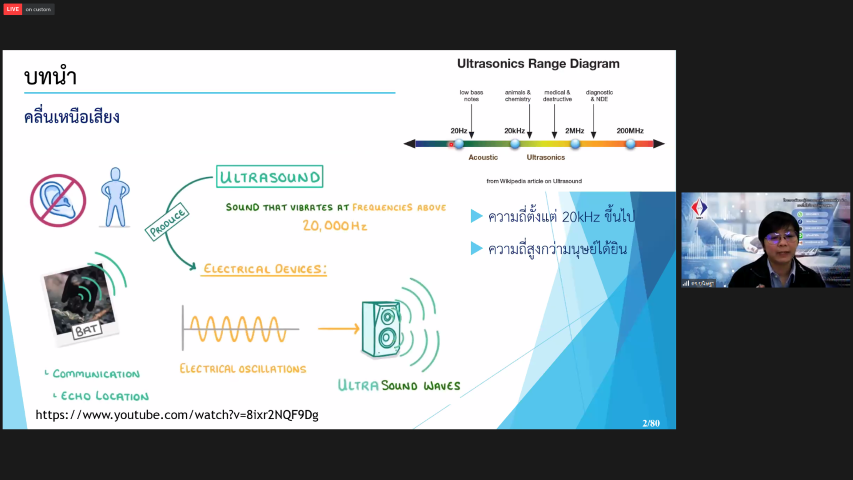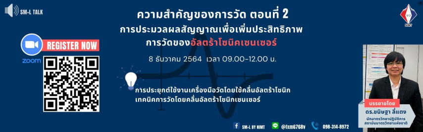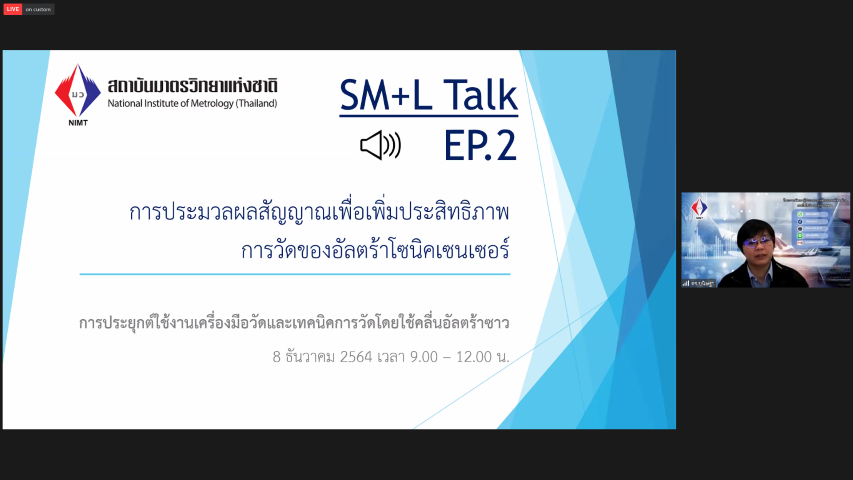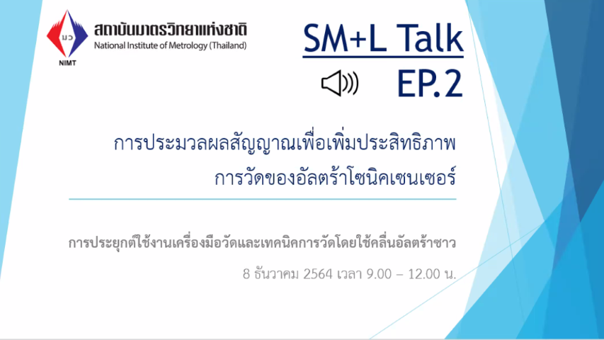 ฝ่ายมาตรวิทยามิติ สถาบันมาตรวิทยาแห่งชาติ มว. ในฐานะผู้รับผิดชอบโครงการในส่วนของกิจกรรมพัฒนาผู้ประกอบการวิสาหกิจขนาดกลางและขนาดย่อม (SMEs) สู่อุตสาหกรรม 4.0 ด้วยเทคโนโลยีมาตรวิทยา จัดบรรยายวิชาการออนไลน์สำหรับผู้ประกอบการ โดยเฉพาะผู้ประกอบการในกลุ่มอุตสาหกรรม S-curve “ความสำคัญของการวัด ตอนที่ 2 : การประยุกต์ใช้งานเครื่องมือวัดโดยใช้คลื่นอัลตร้าโซนิก เทคนิคการวัดโดยคลื่นอัลตร้าโซนิกเซนเซอร์ บรรยายให้ความรู้แก่ผู้สนใจโดย ดร.ขนิษฐา ลี่แตง นักมาตรวิทยา กลุ่มงานกลศาสตร์ของไหล ฝ่ายมาตรวิทยาเชิงกล โดยมีวัตถุประสงค์เพื่อเผยแพร่ความรู้เกี่ยวกับการวัดของอัลตร้าโซนิคเซนเซอร์ พร้อมทั้งตอบข้อข้องใจ สงสัยเกี่ยวกับเรื่องดังกล่าวให้แก่ผู้สนใจรับฟังการบรรยายในครั้งนี้ ณ สถาบันมาตรวิทยาแห่งชาติ (มว.) จ.ปทุมธานี