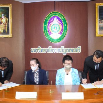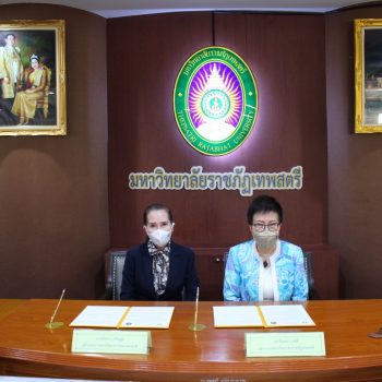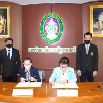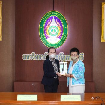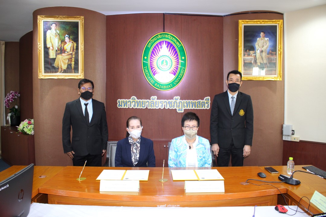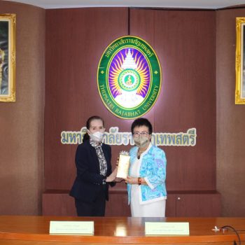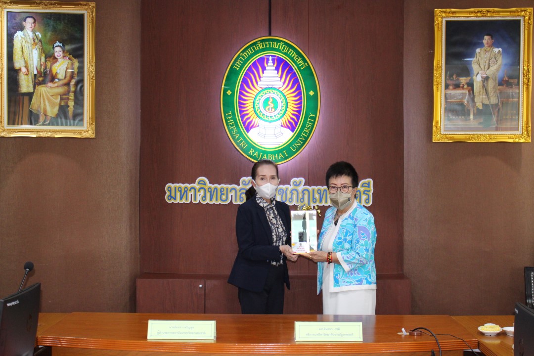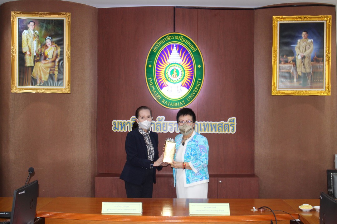 - นางอัจฉรา เจริญสุข ผู้อำนวยการ มว. และ ผศ. จินตนา เวชมี อธิการบดี มรภ.เทพสตรี