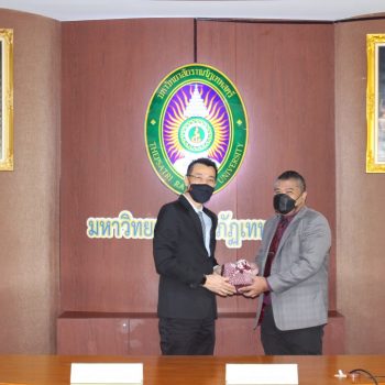 - นางอัจฉรา เจริญสุข รับมอบของที่ระลึกจากท่านอธิการบดี