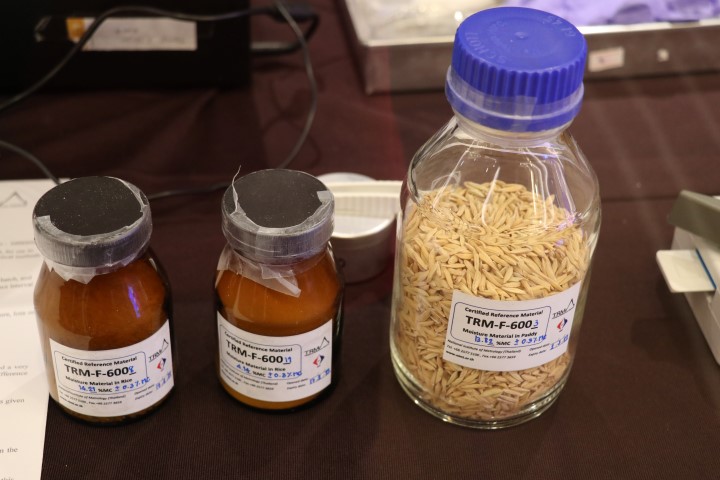 - สาธิตการทวนสอบด้วย TRM ความชื้นในข้าวที่ 14% สำหรับ rice/paddy moisture meter และที่ 4% สำหรับ moisture analyzer
