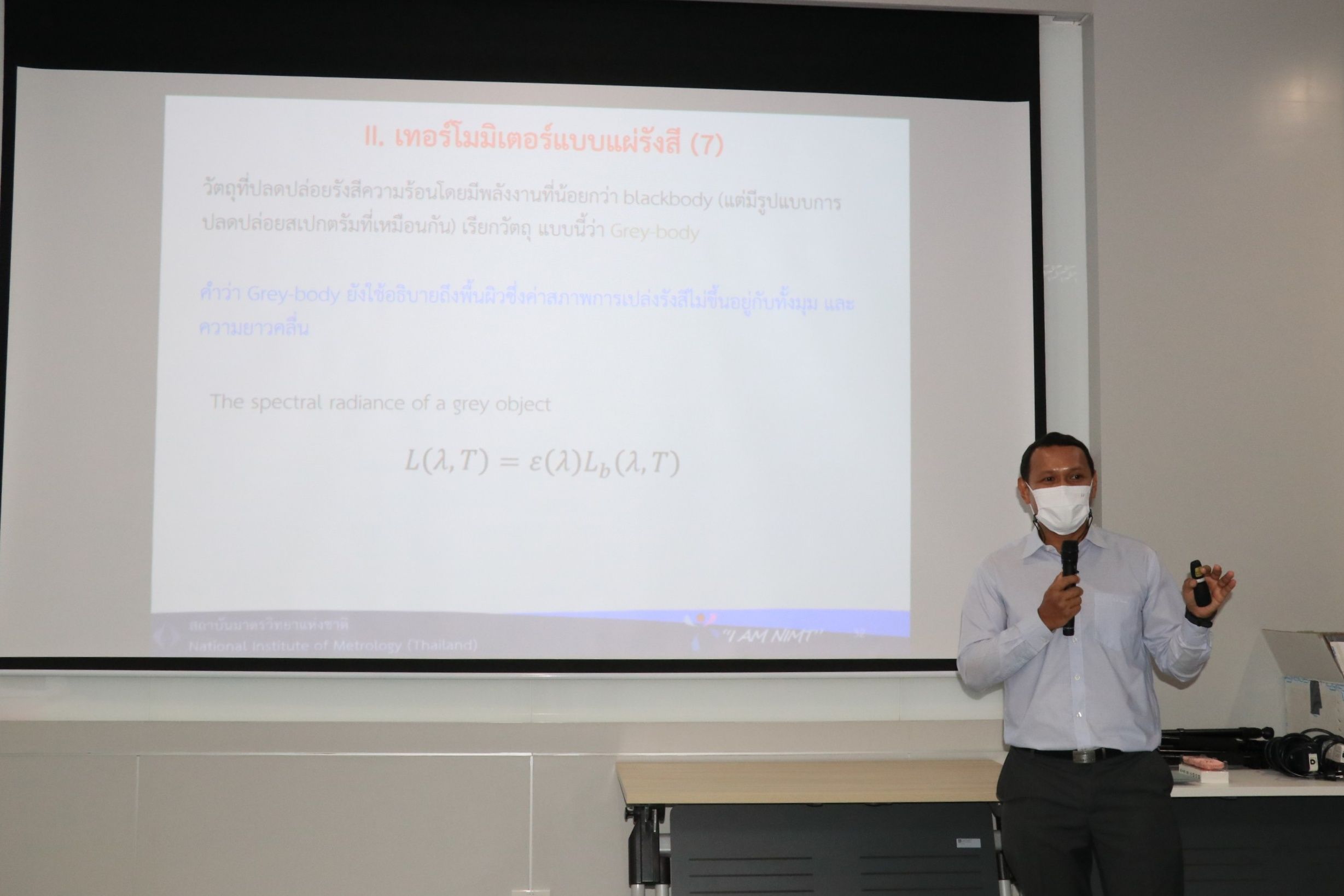 ส่วนฝึกอบรม กลุ่มงานพัฒนาธุรกิจ ฝ่ายนโยบายและยุทธศาสตร์ จัดการอบรมหลักสูตรมาตรวิทยาประจำปี 2565 ในหัวข้อ “ การสอบเทียบInfrared Thermometer” เพื่อให้ความรู้แก่ผู้เข้าอบรมที่สนใจต้องการนำความรู้ที่ได้ไปใช้ในการสอบเทียบInfrared Thermometer Infrared Calibrator หรือ Blackbody Furnace ทั้งจากภาครัฐ เอกชน และอุตสาหกรรม บรรยายโดย ดร.อธิคม มาน้อย (วิทยากร) หัวหน้ากลุ่มงานมาตรฐานปฐมภูมิอุณหภูมิ และนายพิเชษ วงษ์นุช (ผู้ช่วยวิทยากร) นักมาตรวิทยาชำนาญการพิเศษ กลุ่มงานมาตรฐานปฐมภูมิอุณหภูมิ ฝ่ายมาตรวิทยาอุณหภูมิและแสง ทั้งนี้เพื่อให้ผู้เข้าอบรมมีความรู้ความเข้าใจเกี่ยวกับการวัดอุณหภูมิเชิงแผ่รังสี และเข้าใจหลักการของ Infrared Thermometer และแหล่งกำเนิดอุณหภูมิมาตรฐานแบบแผ่รังสี ตลอดจนสามารถสอบเทียบ Infrared Thermometer และสามารถประเมินค่าความไม่แน่นอน และสามารถออกและตีความใบรับรองผลการสอบเทียบได้ โดยผู้เข้ารับการอบรมจะได้เรียนรู้เนื้อหาทั้งในภาคทฤษฎี และภาคปฏิบัติเพื่อให้ผู้เข้าอบรมสามารถนำความรู้ที่ได้รับจากการอบรมไปประยุกต์ใช้ในการปฏิบัติงานได้จริง ณ ห้องประชุมชั้น 3 อาคารพัฒนามาตรฐานการวัดเพื่อรองรับการพัฒนาระบบราง (มว.) จ.ปทุมธานี